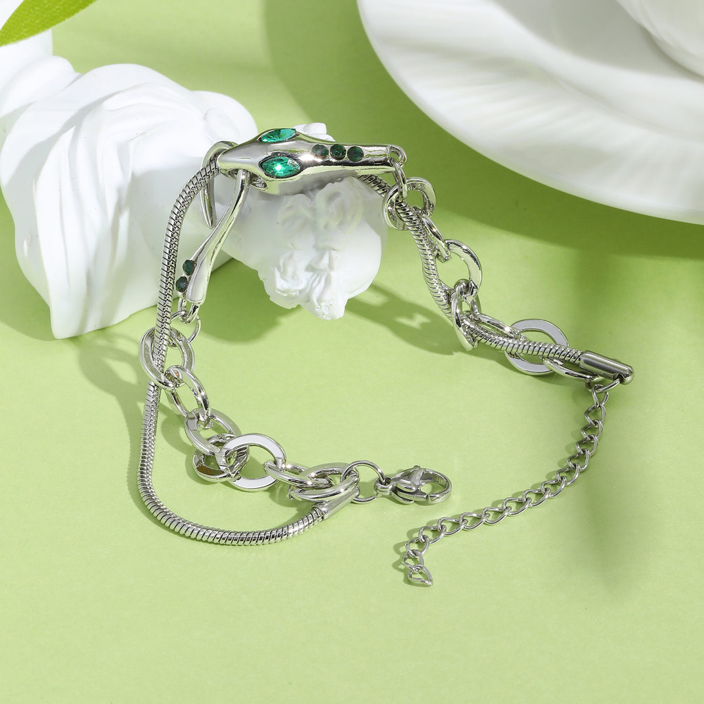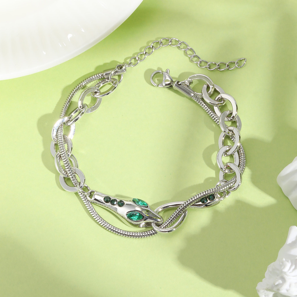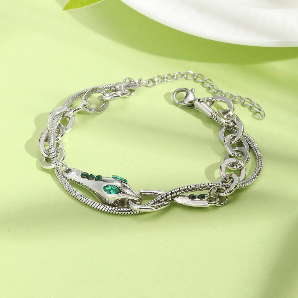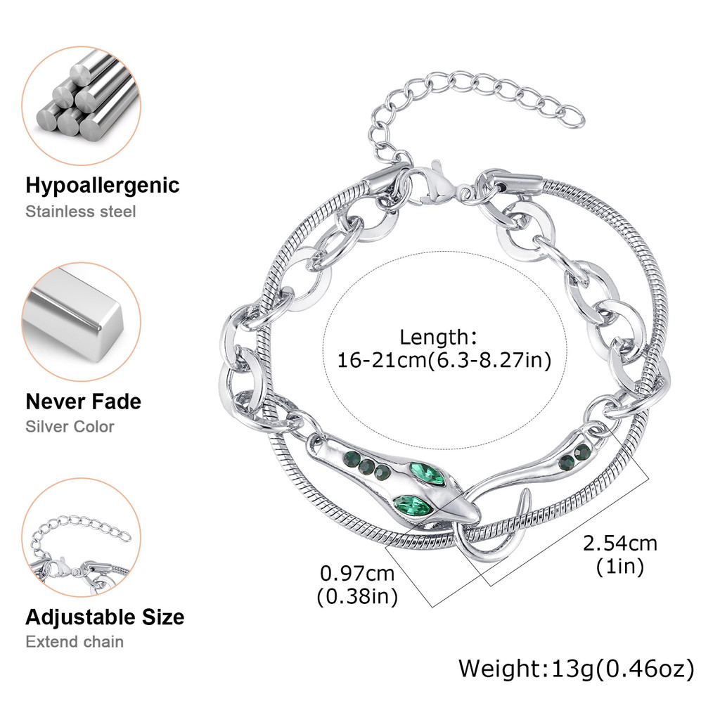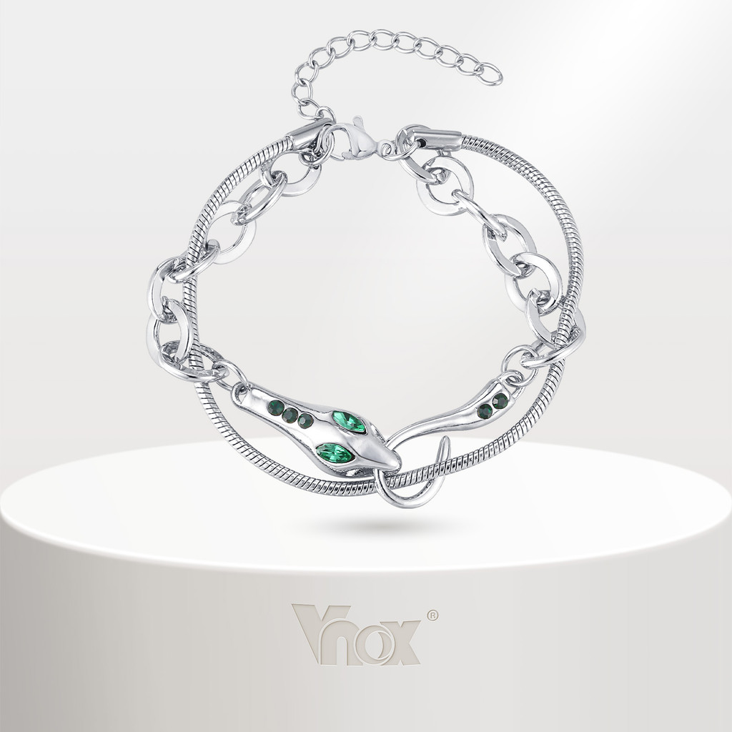 Vnox Pulseira De Camada Dupla Em Forma De Cobra De Aço Inoxidável Para Mulheres E Homens , Moda Hip Hop Ajustável Punk J