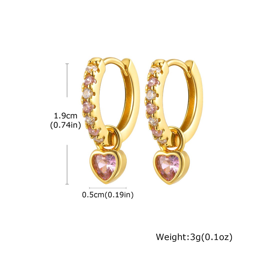 Brincos De Argola Vnox Golden Huggie Vitntage Love Zircon Para Mulheres , Coração Joias Hipoalergênicas Presente