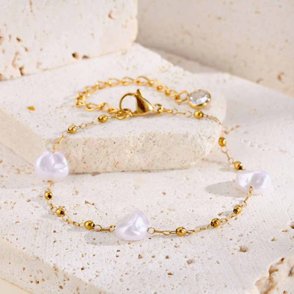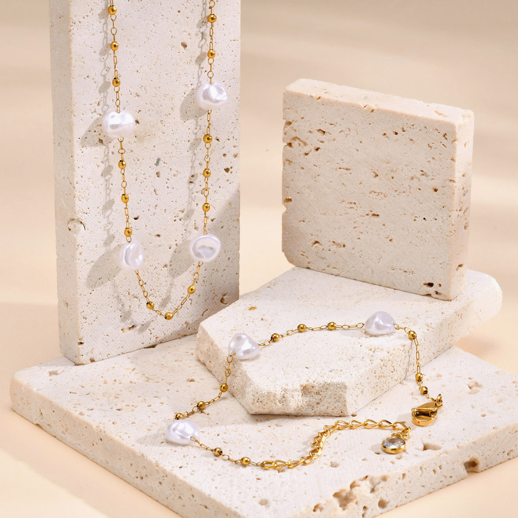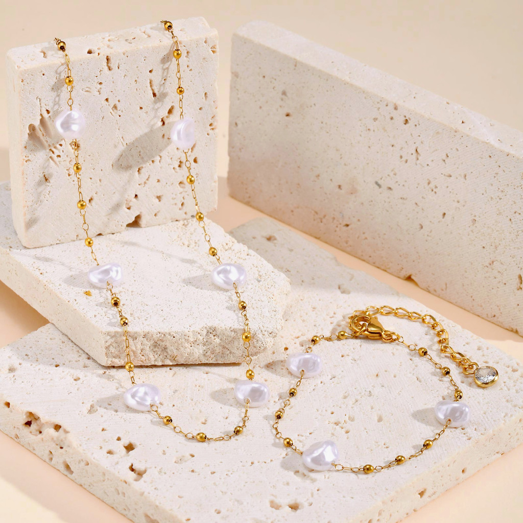Conjunto De Pulseira De Pérolas Barrocas Vnox Para Mulheres E Meninas , Joias Minimalistas De Aço Inoxidável Dourado Sem