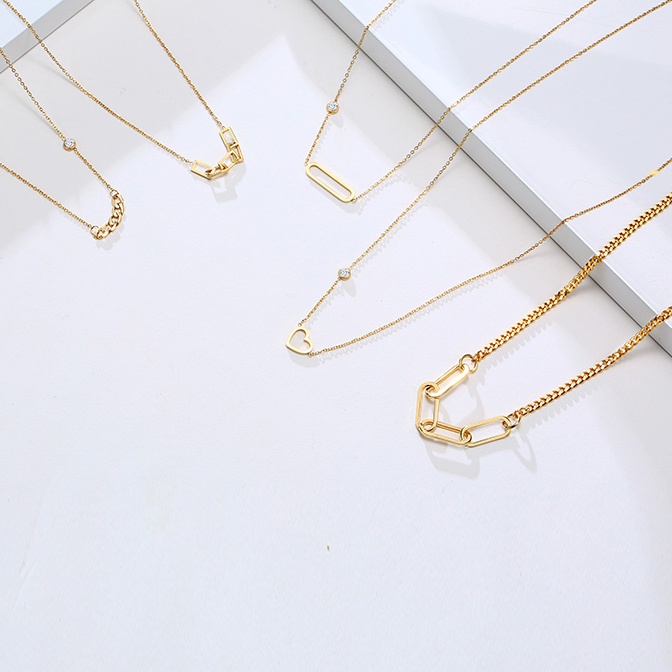 Colar De Elo De Corrente Fino Delicado Vnox Com CZ Cúbico , Aço Inoxidável Em Tom Dourado Para Mulheres E Meninas