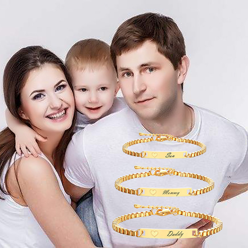 Vnox Pulseira De Aço Inoxidável Gravado Personalizada Fimily Jóias Para O Bebê Pai Mãe