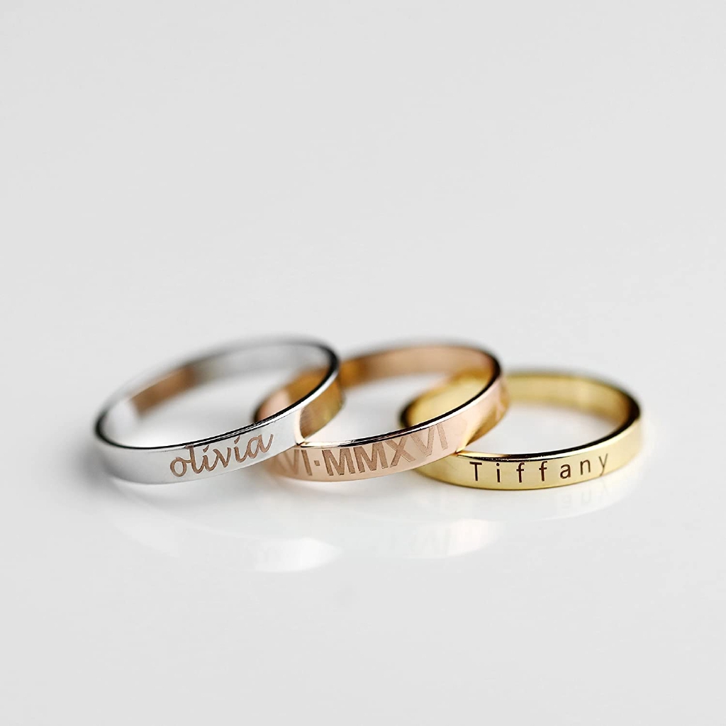 Vnox Anel com Gravação Nome Personalizado Anel de Formatura Presente do Dia das Mães Anel Inspirador