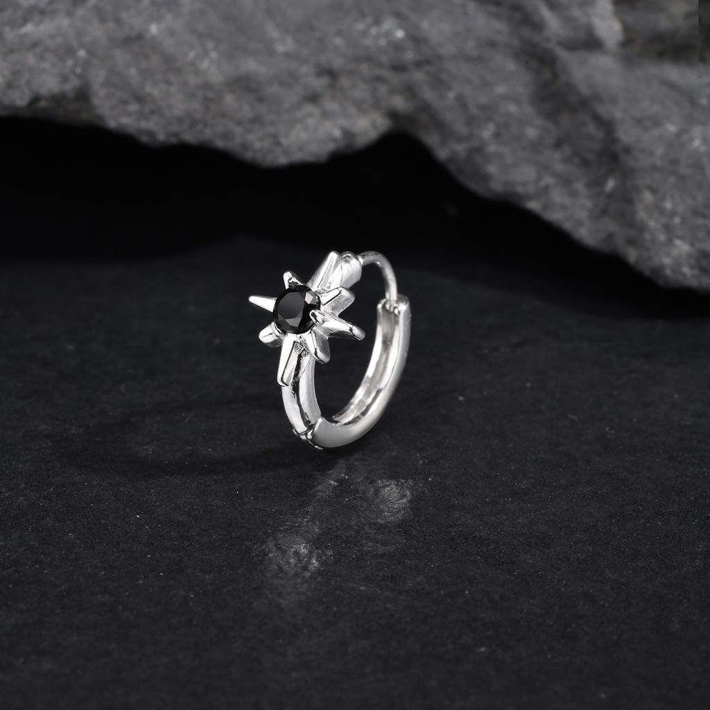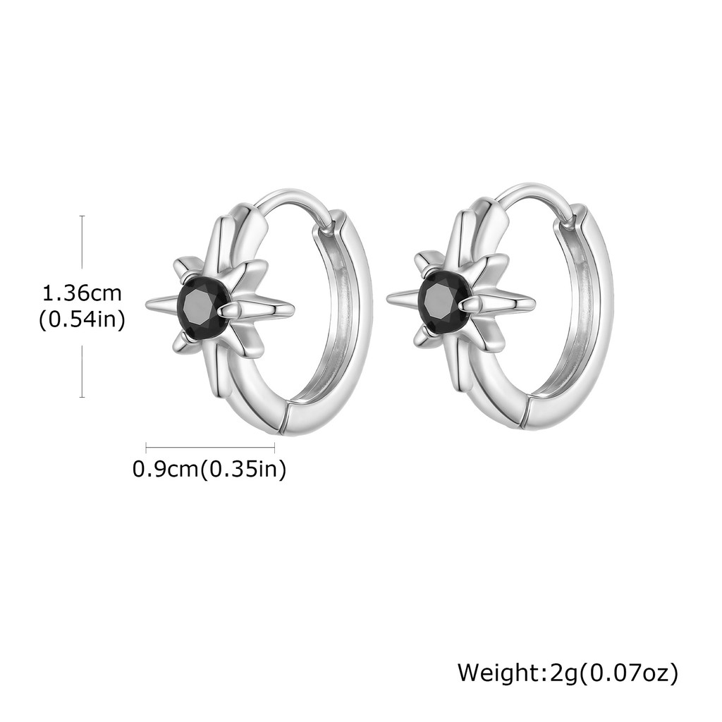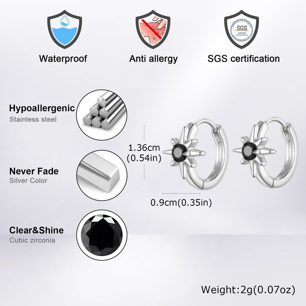 Brincos De Aço Inoxidável VNOX Para Homens Argola De Octágram De Zircônia Preta Melhor Amigo Presente De Dia Dos Pais J