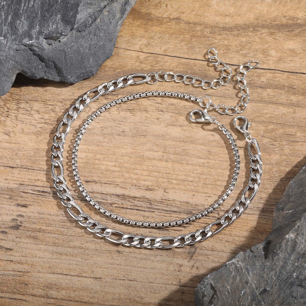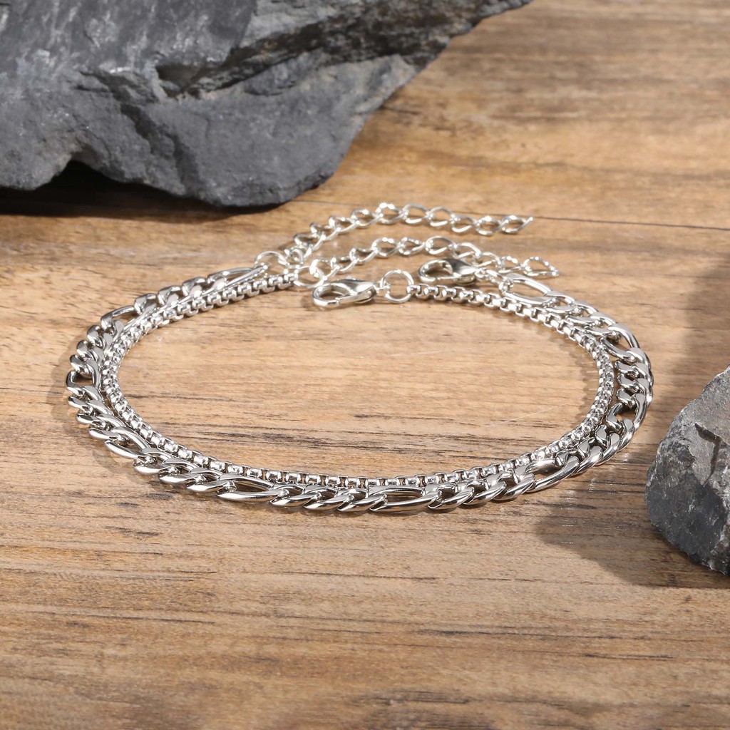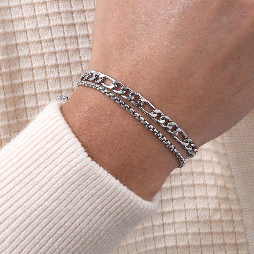 Conjunto De Pulseiras Masculinas Vnox Fashion 2 Peças , Corrente De Caixa De Aço Inoxidável E De Ligação Cubana , Joias