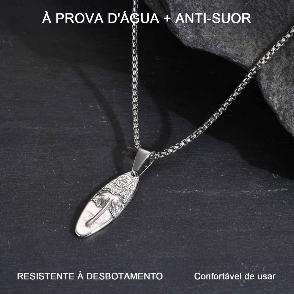 Colar Com Pingente De Palma De Coco Em Aço Inoxidável Vnox , Joia Oval Estilo Havaiano Para Férias Cor Prateada