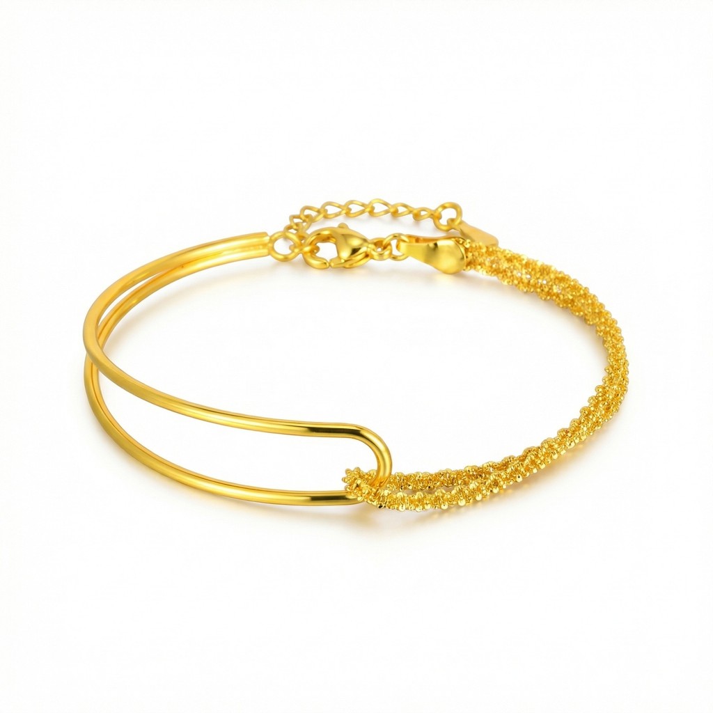 Vnox Fashion 18k Gold Round Tube Splicing Pulseira De Ouro De Camada Dupla Para Mulheres E Meninas , Presente De Joias U