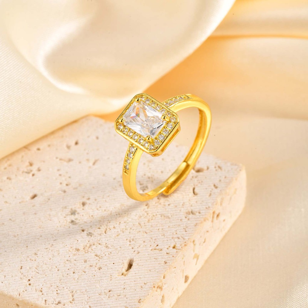 Vnox Anel De Abertura Vintage Cúbico De Zircônia Brilhante Para Mulheres , Casamento Banhado A Ouro , Não Manchado , Fes