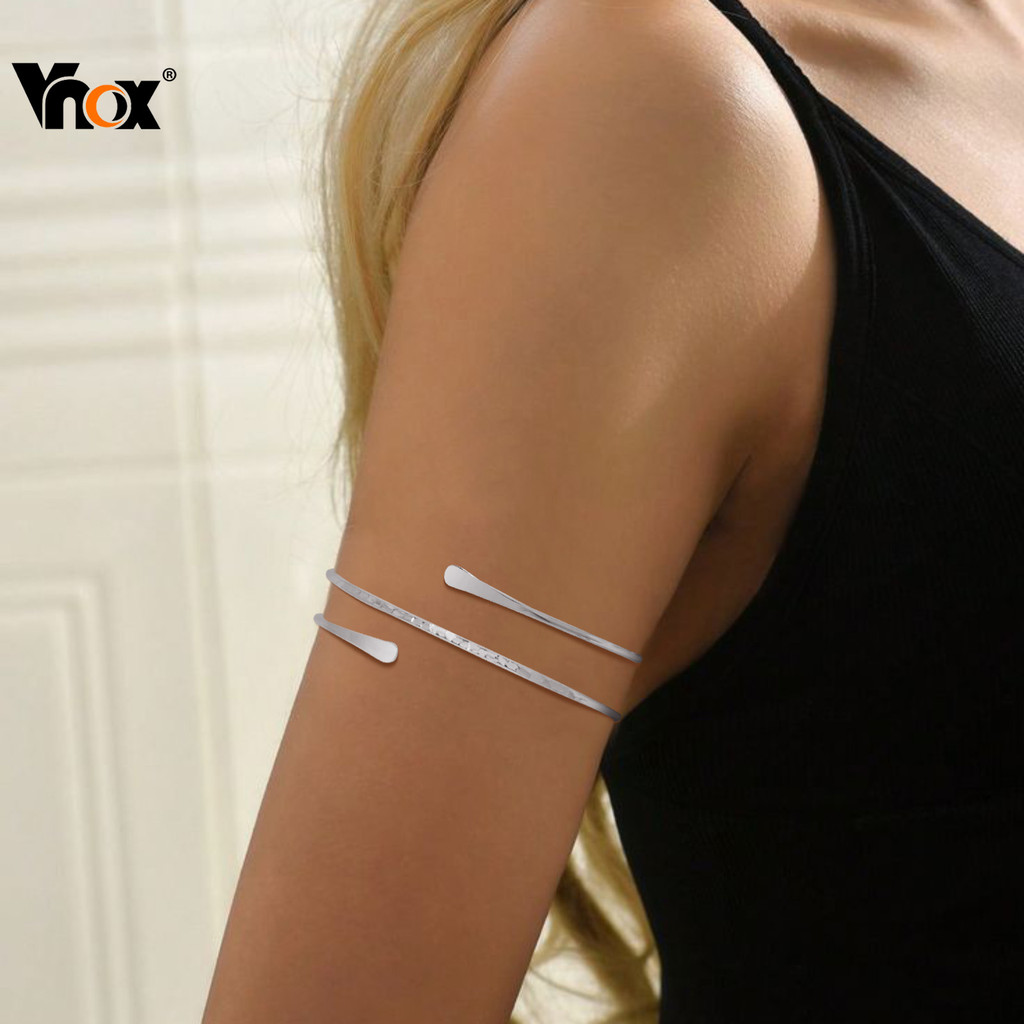 Vnox Ouro Prata Exagerado Punk Oco Multi-Camada Pulseira , Brilhante Em Forma De Cobra Braço Anel Para Mulher , Conjunto