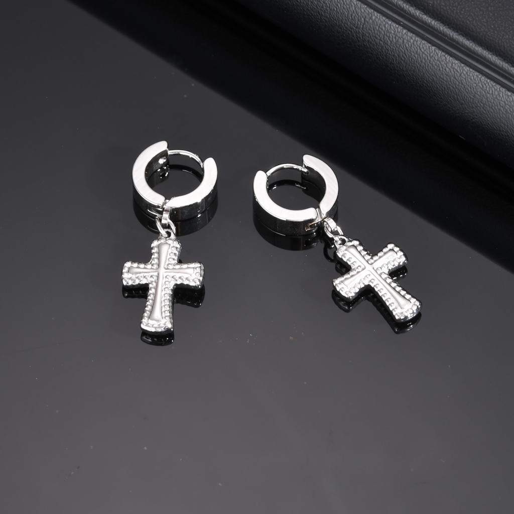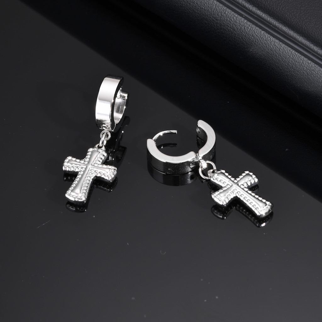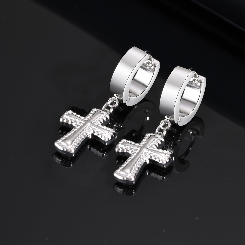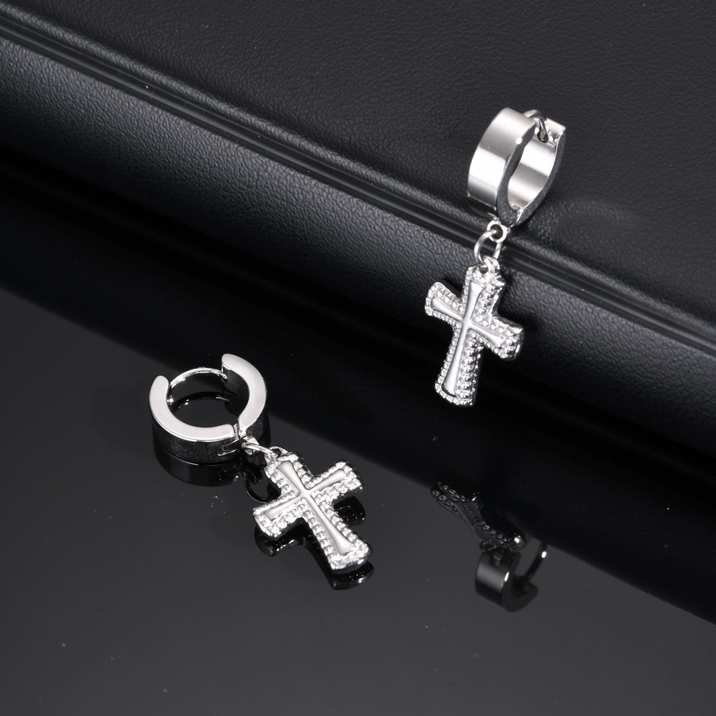 Brincos De Gota Cruzada De Zircônia Vnox Para Homens E Meninos , Brinco De Cruz Unissex De Aço Inoxidável Tendência Reli