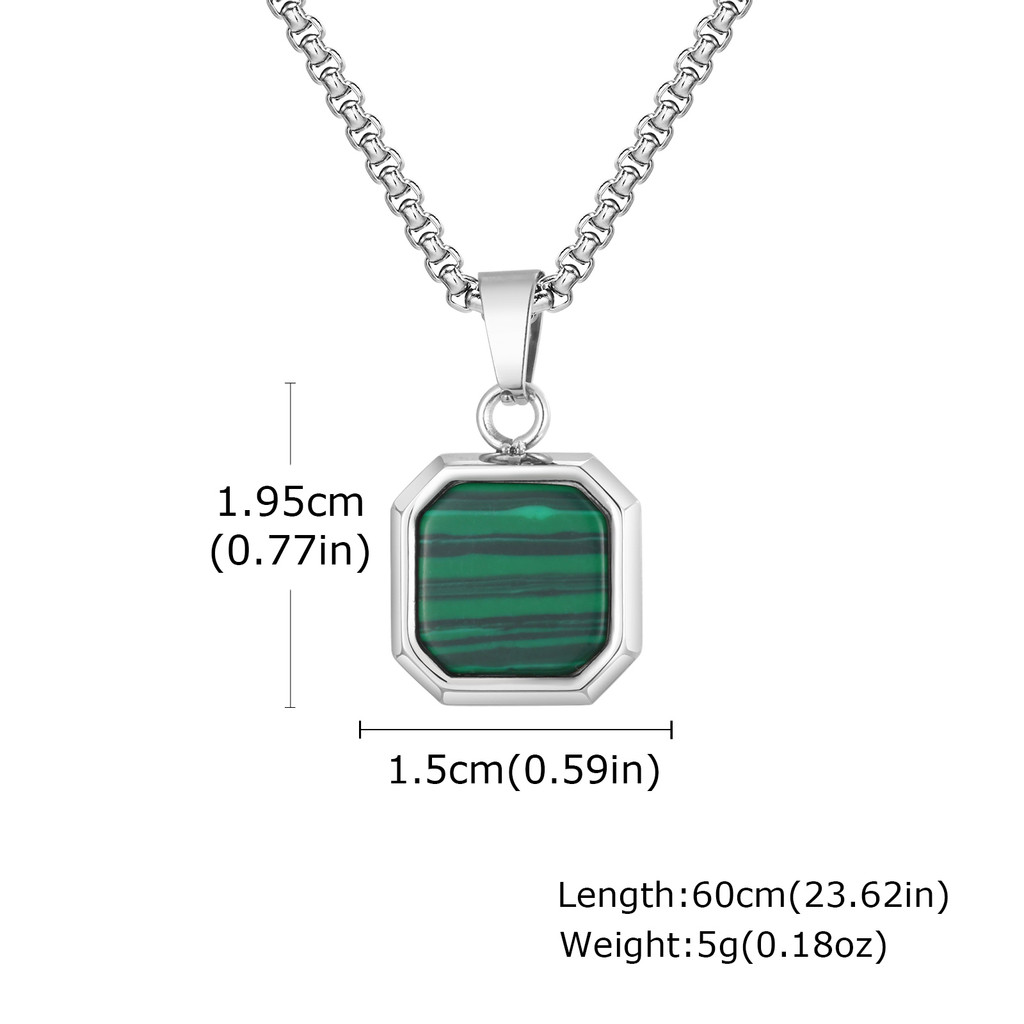 Vnox Aço Inoxidável Hipoalergênico Quadrado Malaquita Abalone Concha Pingente Colar 15x19.5x4mm Caixa Corrente Jóias Pre