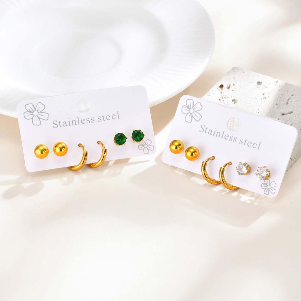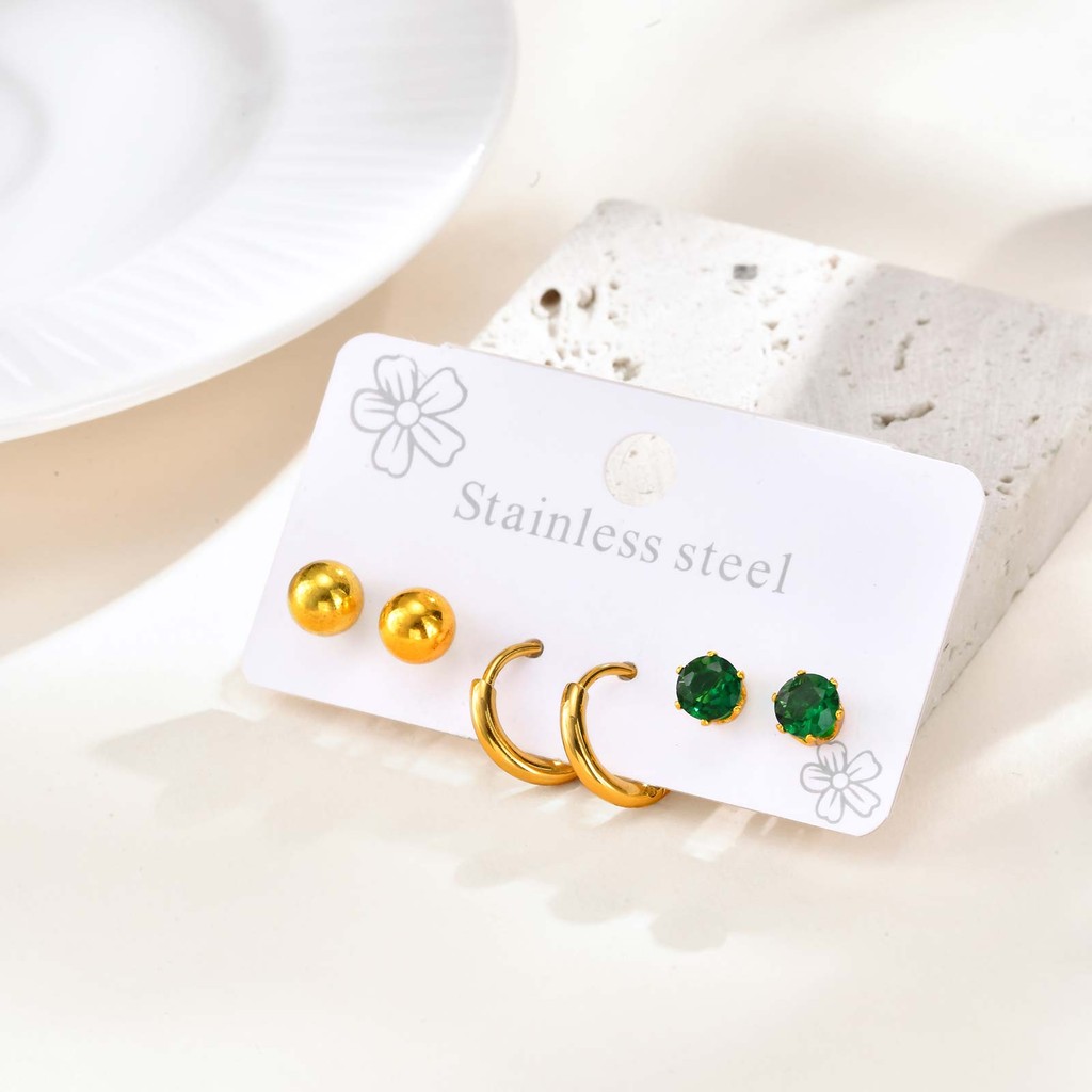 Vnox 3 Pçs Bola De Aço Verde E Branco Zircão Cúbico Frisado Brincos Círculo Feminino Meninas Simples Conjunto De Três Pe