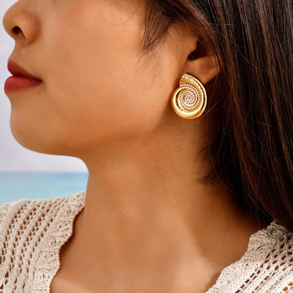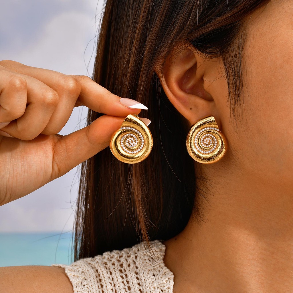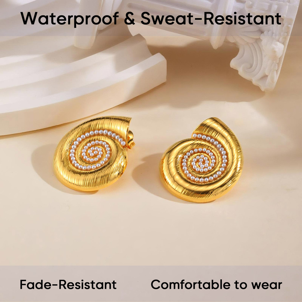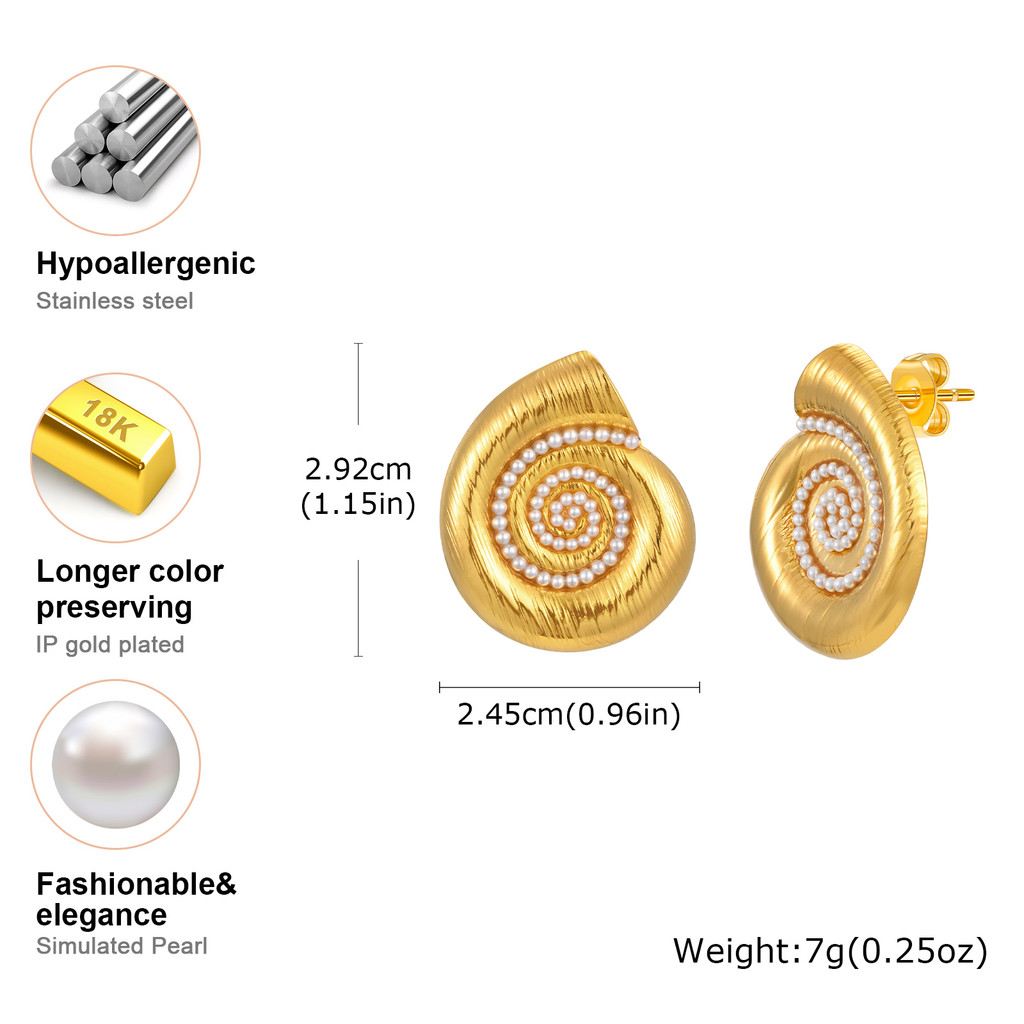 Vnox Feminino Meninas Estilo Oceano Ouro Concha Pérola Brincos , Aço Inoxidável Não Desbotamento E Hipoalergênico Festa