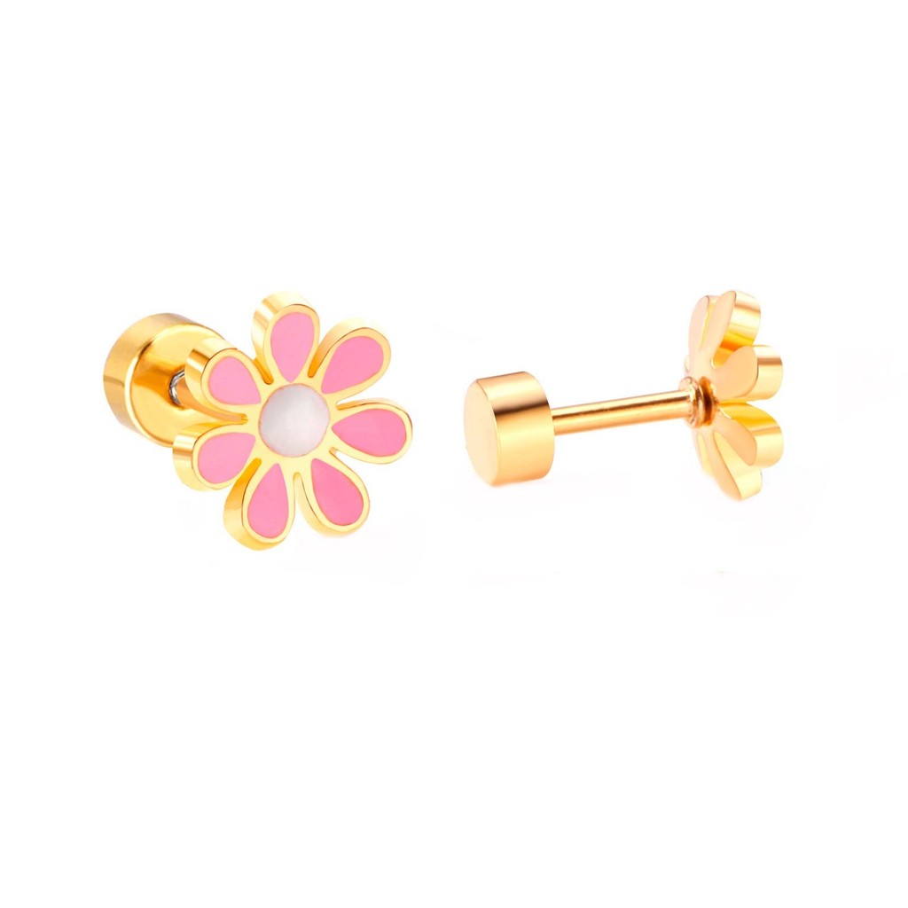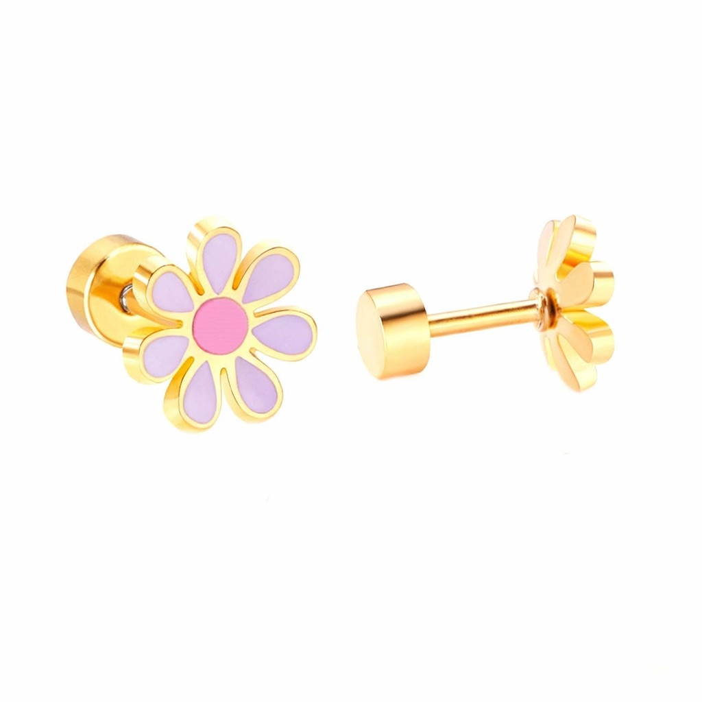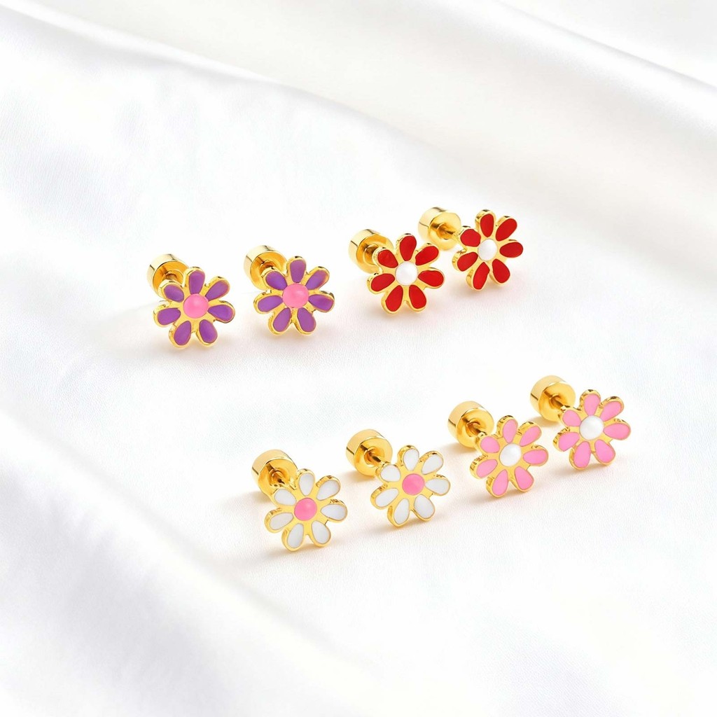 Vnox Hypoallergenic Colorful Daisy Flower Cute Stud Earrings for Women Baby Girl,Stainless Steel Earring