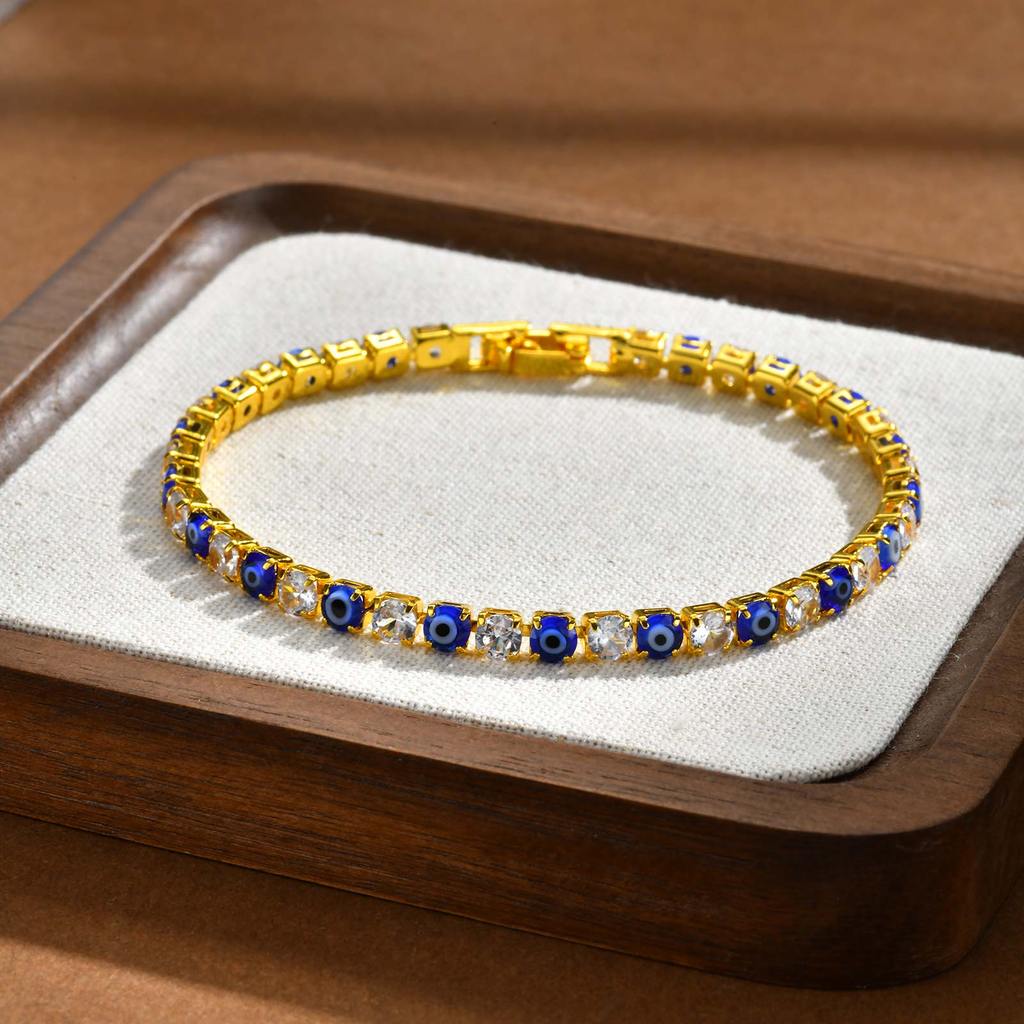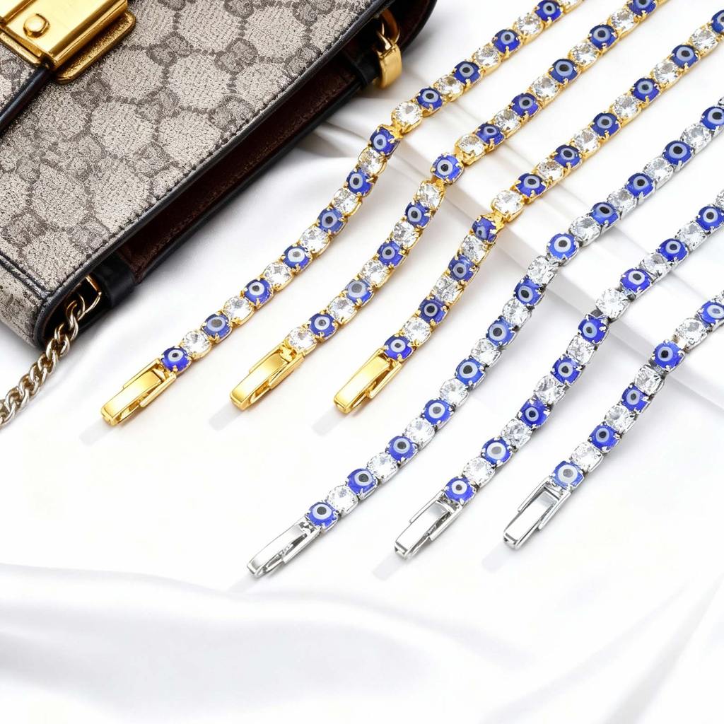 Vnox Evil Eye Zircon Tennis Bracelet for Women Men Amulet Protection Good Luck Minimalist Chain link