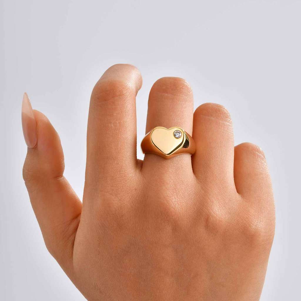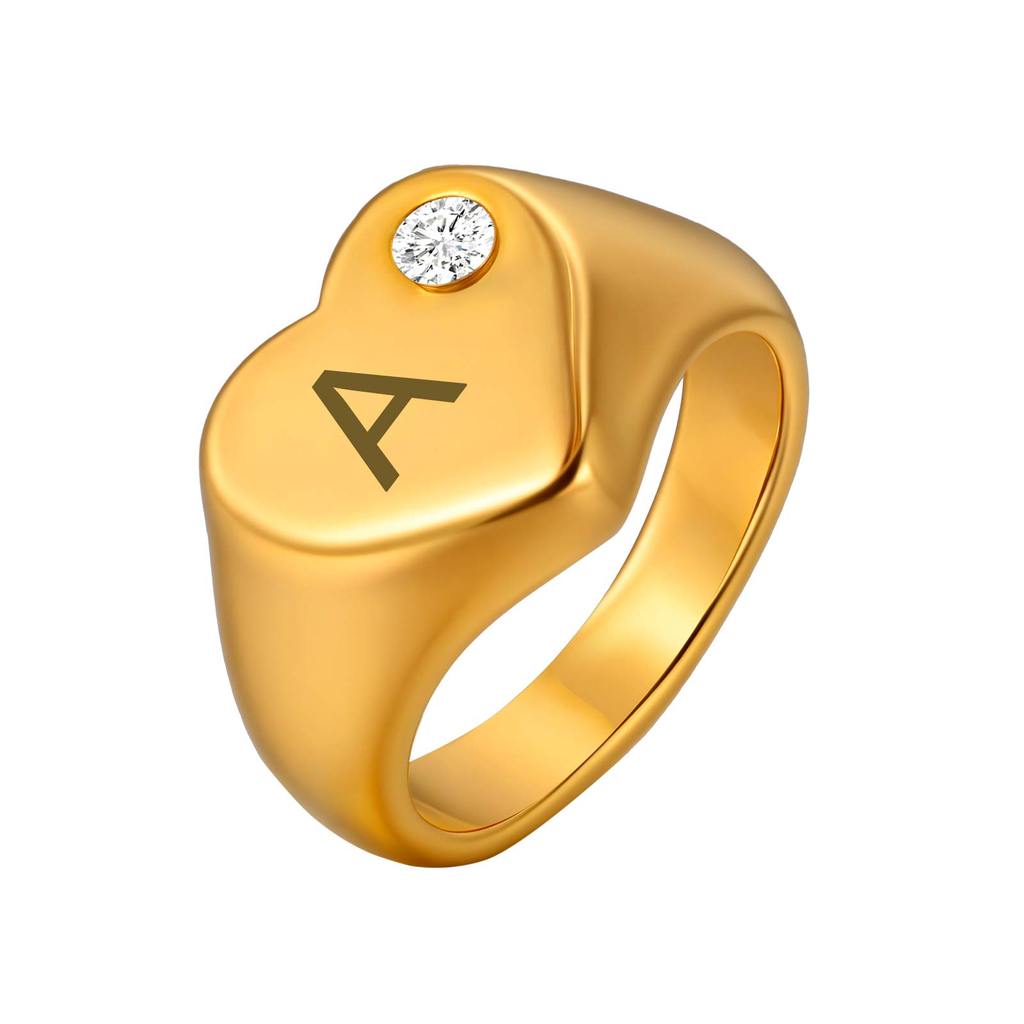 Vnox Personalizado Feminino Meninas Em Forma De Coração Único Anel De Diamante Gravura Nome Ouro Aço Inoxidável Não Manc