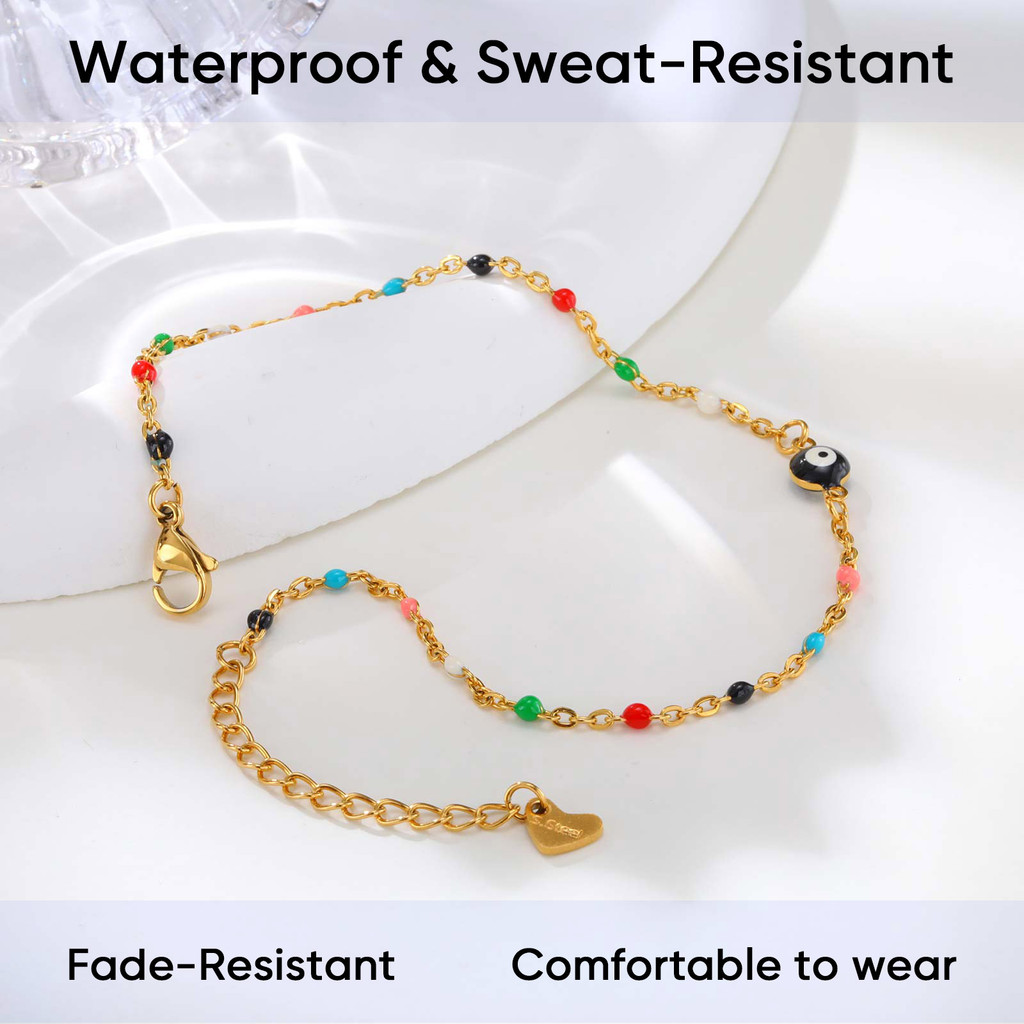 Tornozeleiras Femininas Com Contas Coloridas Vnox Devil'S Eye , Aço Inoxidável , Não Manchado , Ajustável , Joias Exclus