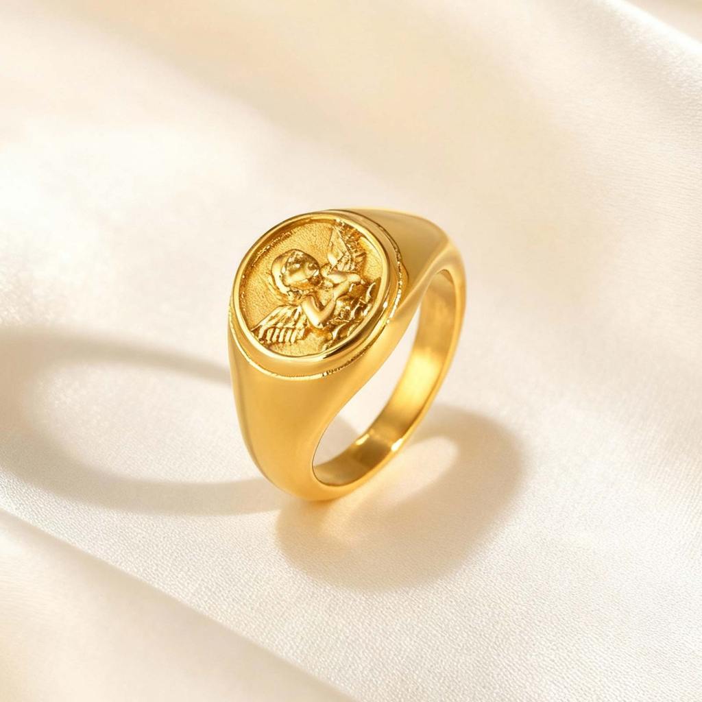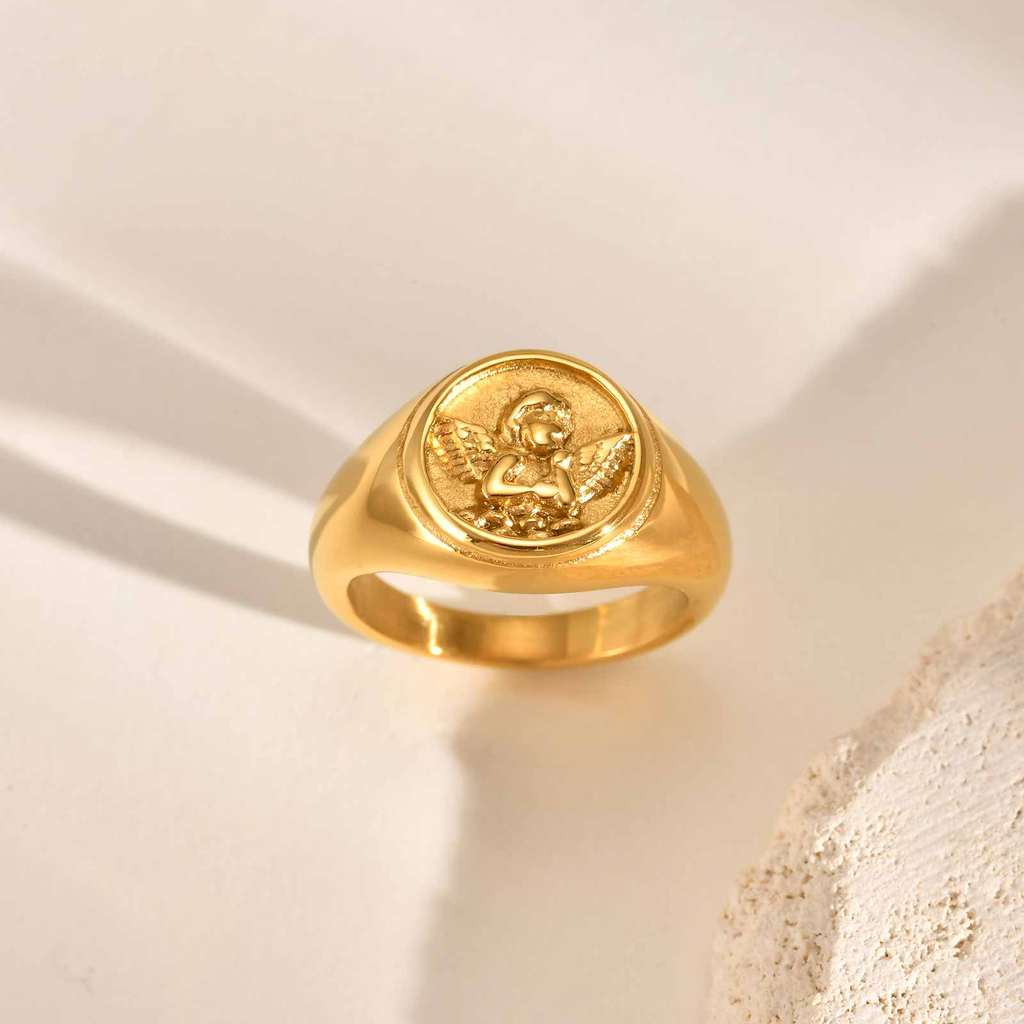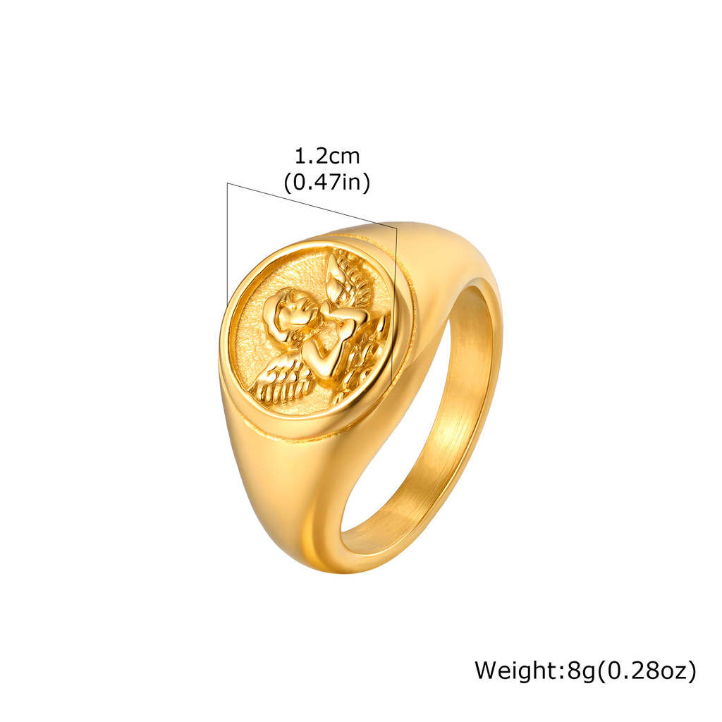 Vnox Ouro Cupido Anel Feminino Masculino Casal Meninas Aço Inoxidável Amor Robusto Amante Jóias Presente