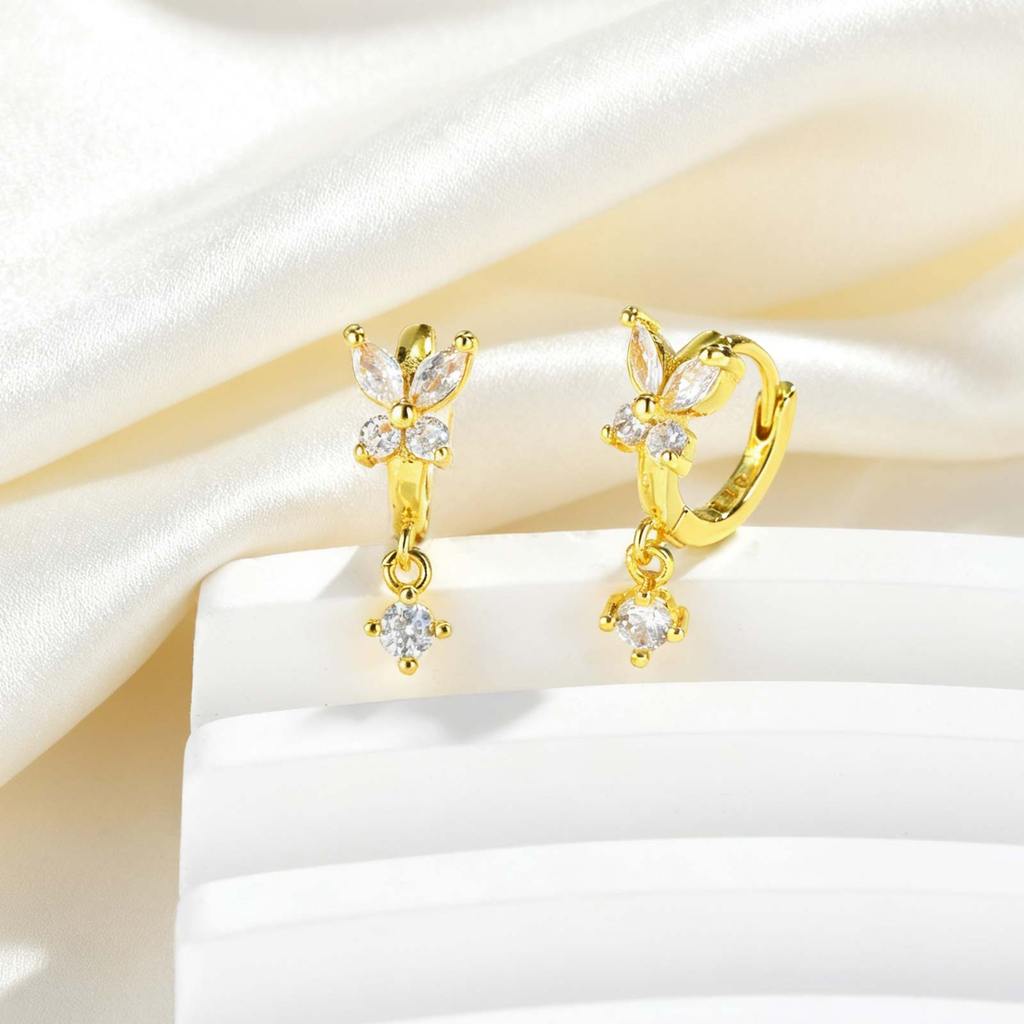 Vnox Brincos Com Pingente De Borboleta Cúbica De Zircônia Brilhante Dourada Para Bebês Meninas Meninos Banhados A Ouro S