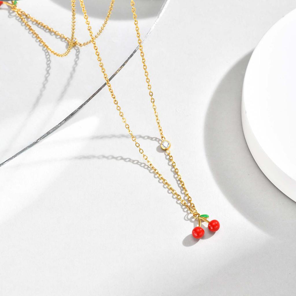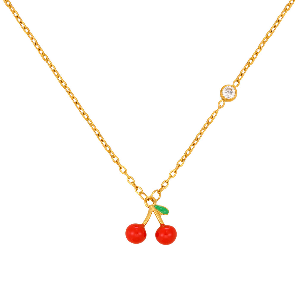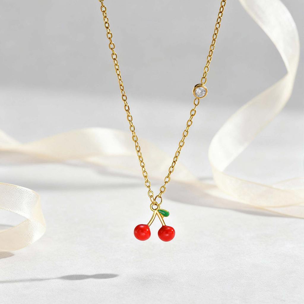 Vnox 18K Gold Plated Red Fruit Cherry Charms Necklace for Women Girl,Stainless Steel Non-fade Chain Link