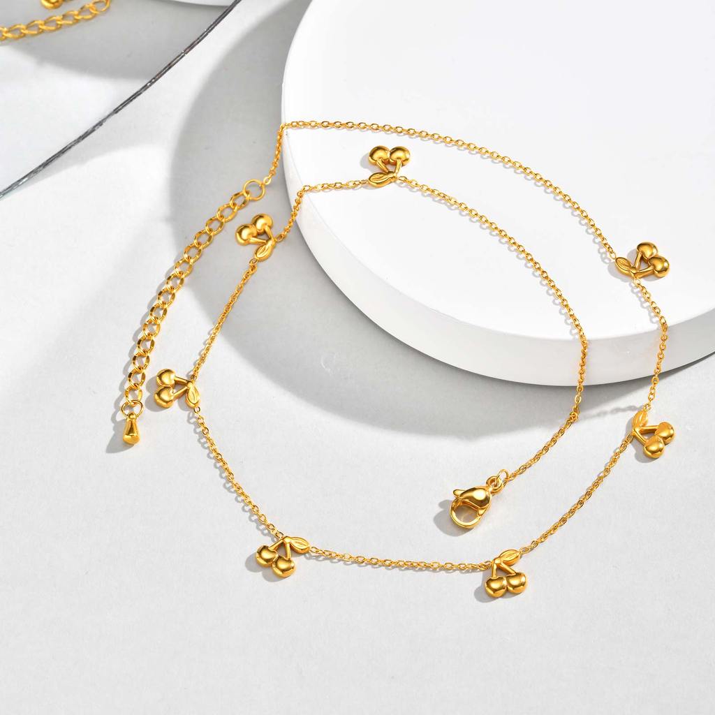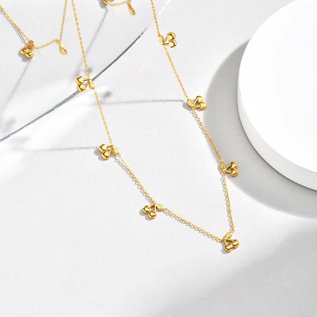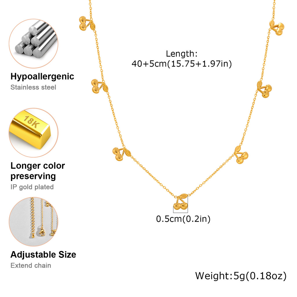 Vnox 18K Gold Plated Red Fruit Cherry Charms Necklace for Women Girl,Stainless Steel Non-fade Chain Link
