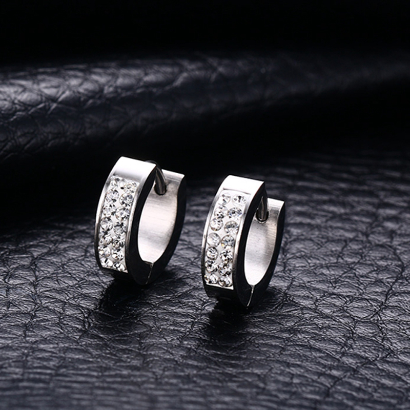 Vnox Brincos Femininos De Diamante De Cor Prata Em Aço Inoxidável Com Argola Para Orelha
