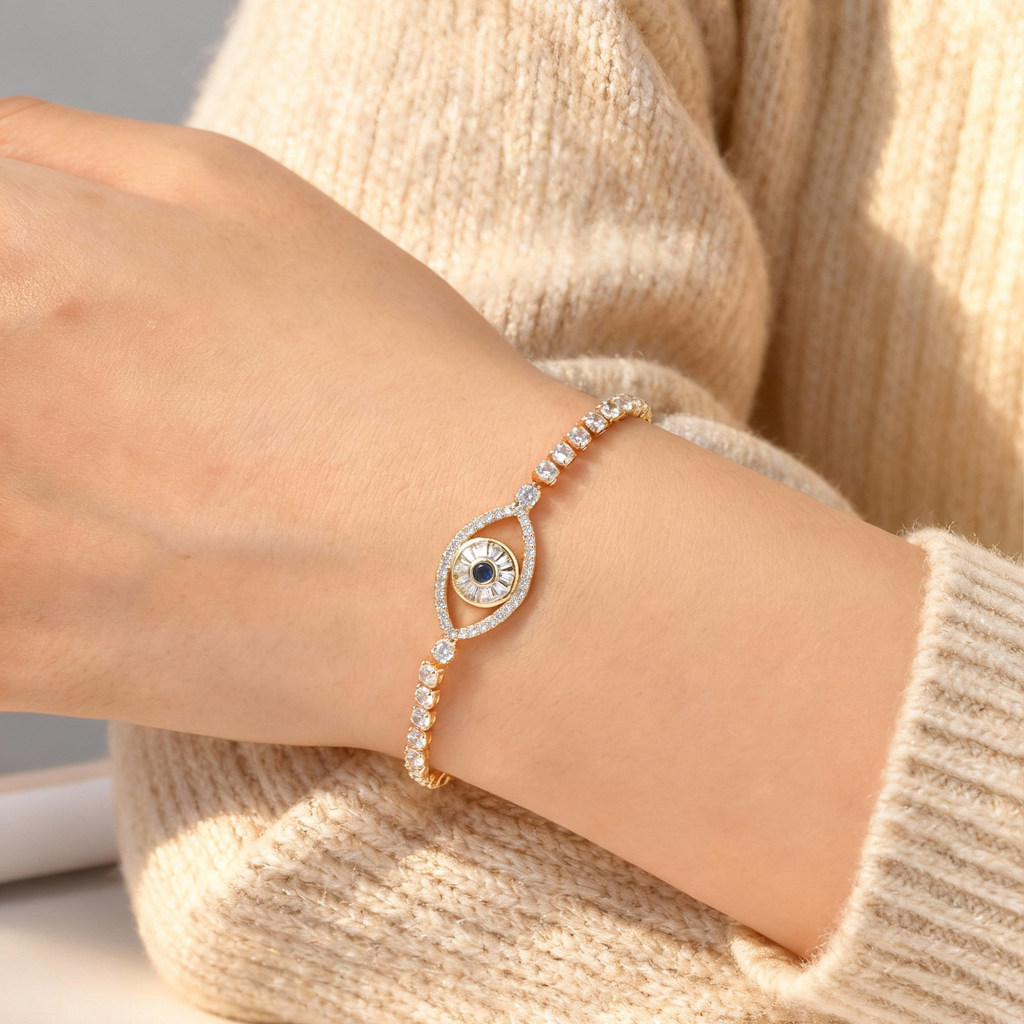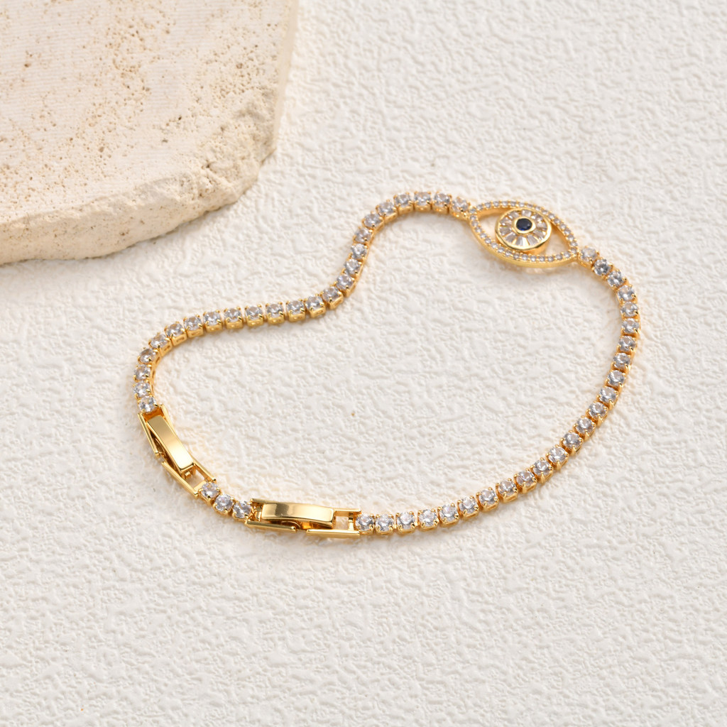 Pulseira De Corrente De Zircônia Vnox Full Zircon Devil's Eye Para Mulheres E Meninas , Fé De Luxo 18K Joias