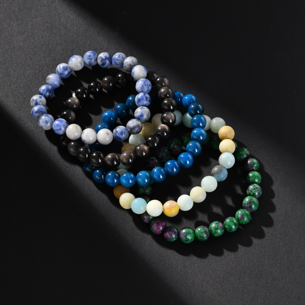 Pulseiras De Corda Elástica Com Contas De Pedra Natural Vnox Para Homens E Mulheres , Joias Da Sorte Presentes Amigos Fa