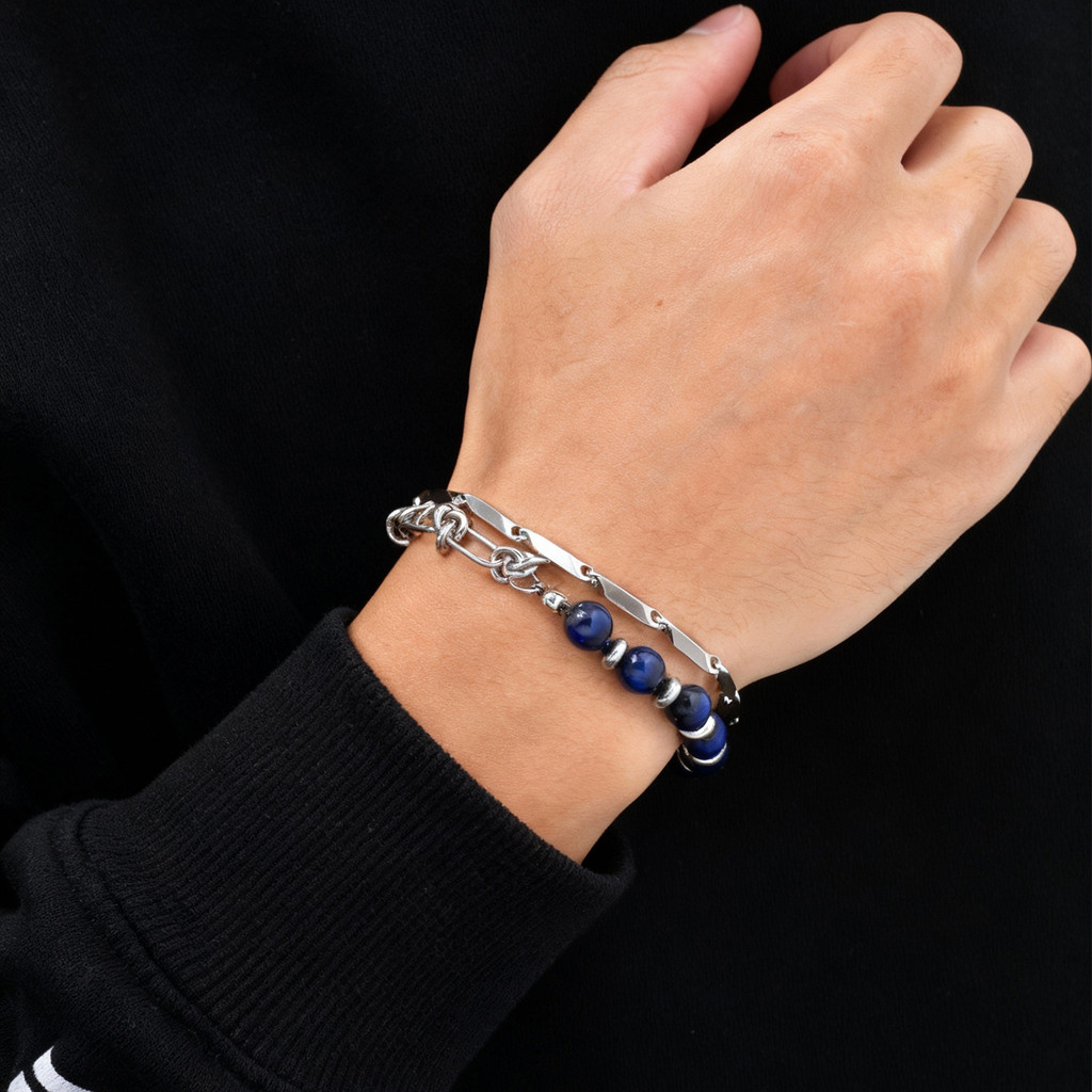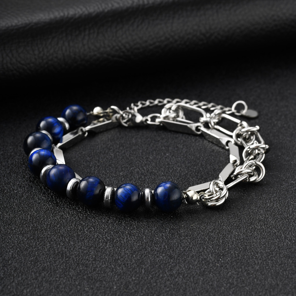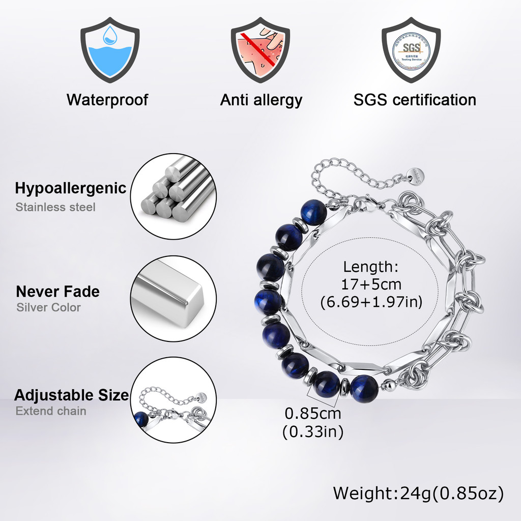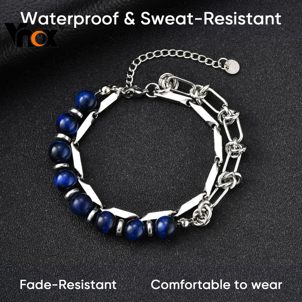 Pulseiras De Corrente De Contas Vnox Para Homens , Pulseira Ajustável À Prova D'água De Camada Dupla , Joia Empilhável ,