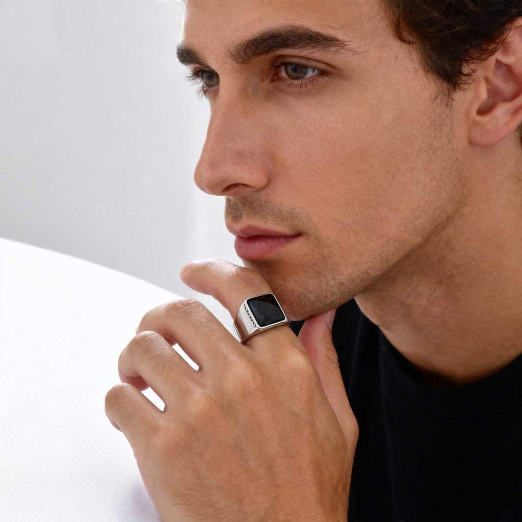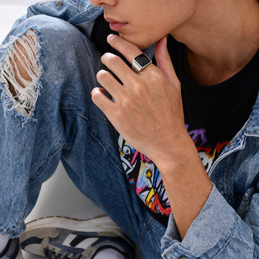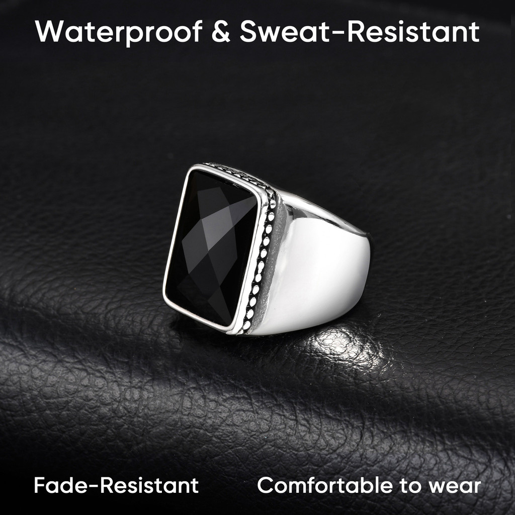Anel Masculino Vnox Hip Hop De Aço Inoxidável Cristal Preto Facetado Cor Negrito Estilo Rua Joias