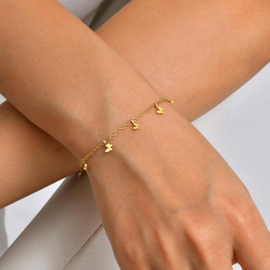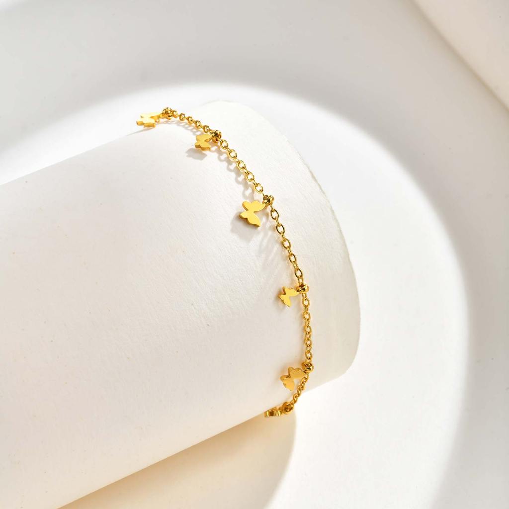 Vnox Ouro Aço Inoxidável Borboleta Arco Acessórios Pulseira Colar Conjunto De Duas Peças Feminino Meninas À Prova Dwater