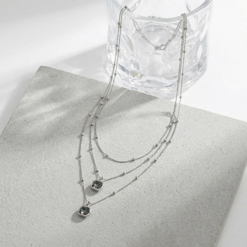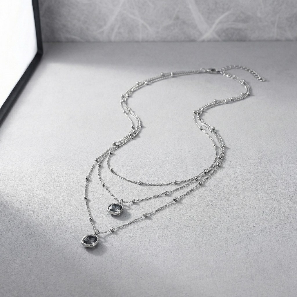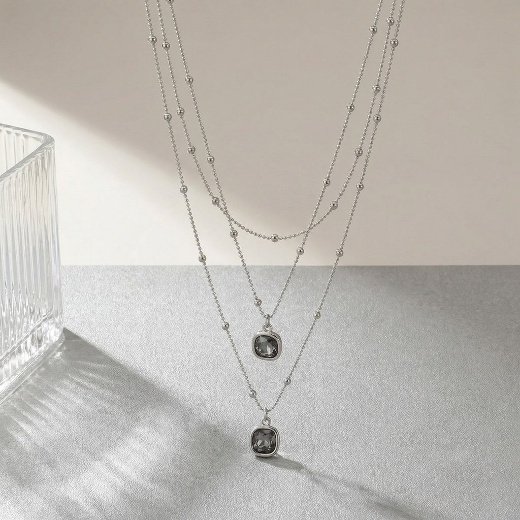 Colar Em Camadas De Contas De Zircônio Preto Vnox Para Mulheres E Meninas , Joias De Pescoço Com Corrente Ajustável Da M