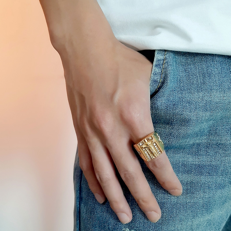 Vnox Jesus Cristo Cruz Chunky Anel Para Homens De Aço Inoxidável Cristais Jóias Da Cor Do Ouro Religião