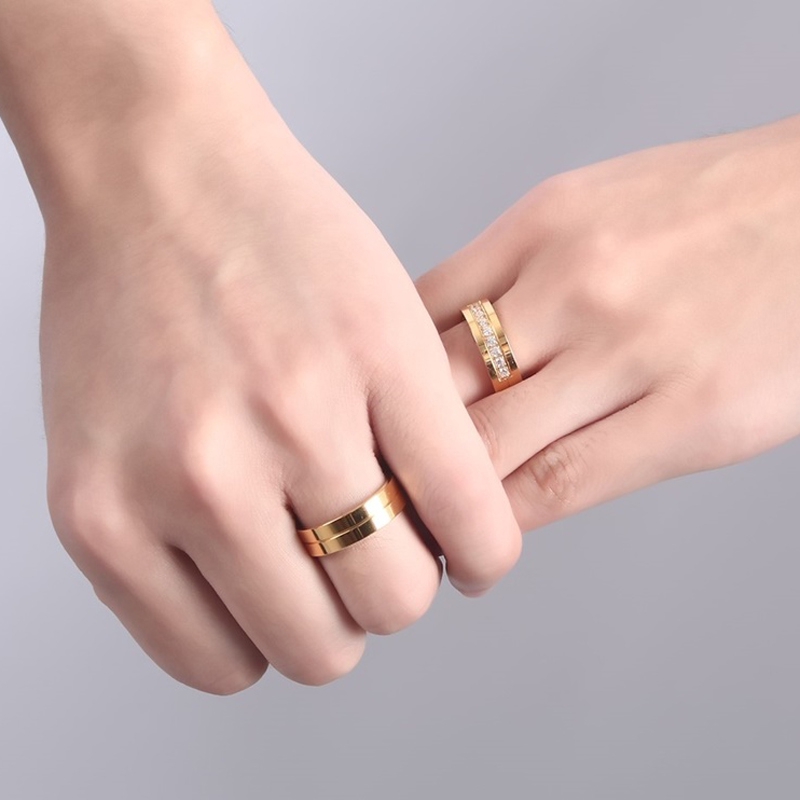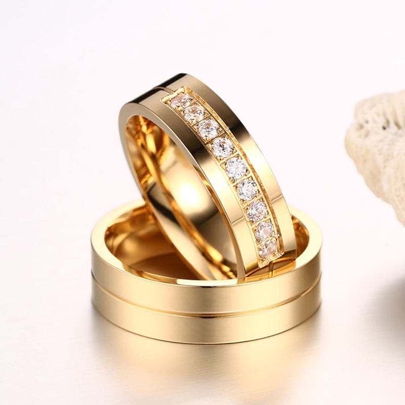 Vnox Anel de Casamento com Zircônia AAA em Cor Dourada Unissex Joia para Noivado/Casamento