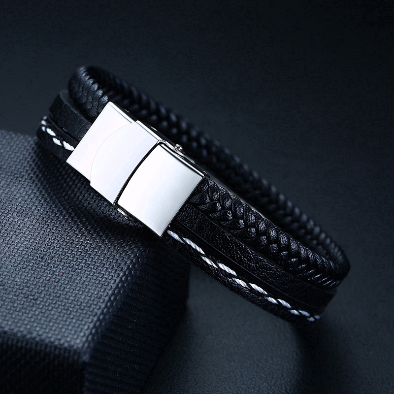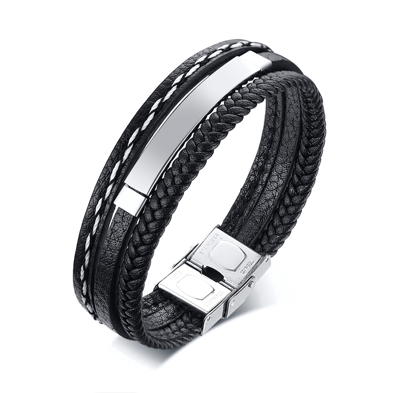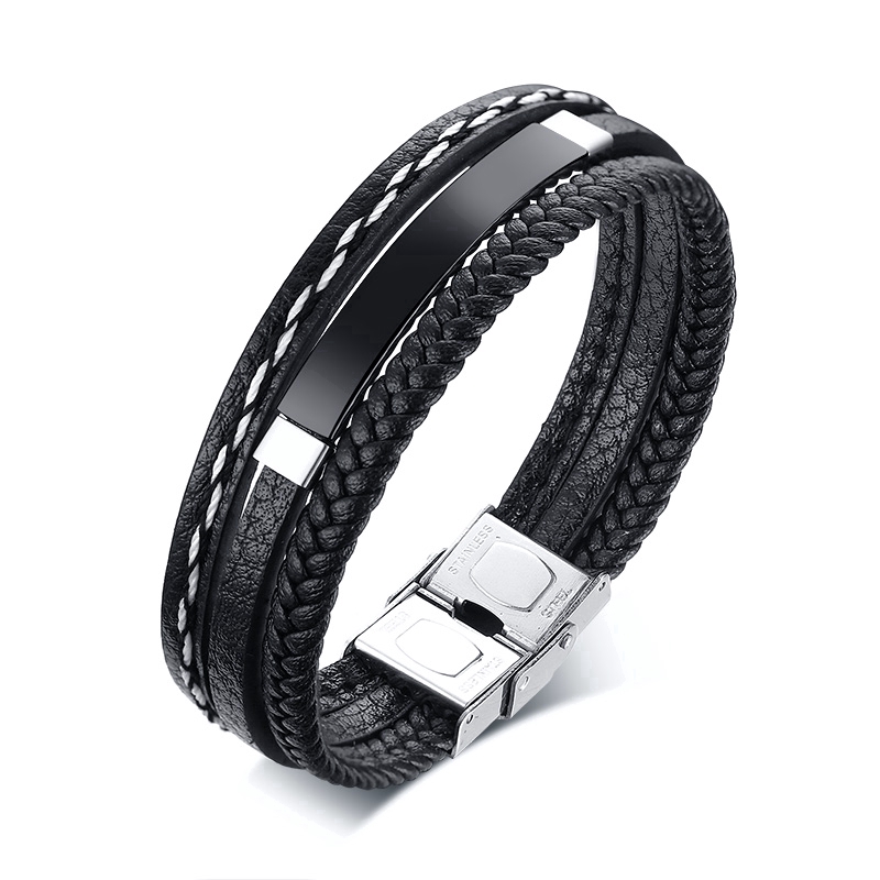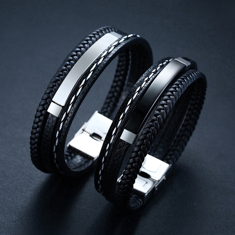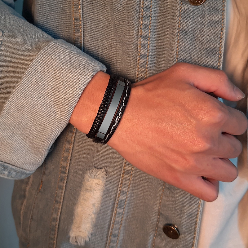 Vnox Jóias Masculino Personalizado Gravado Preto Pulseira De Couro Trançado De Aço Inoxidável Pulseiras Da Moda
