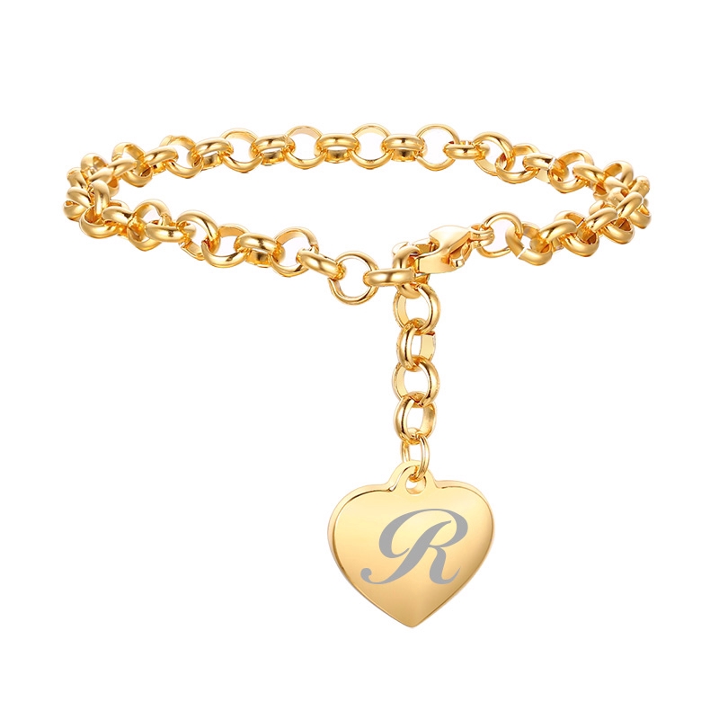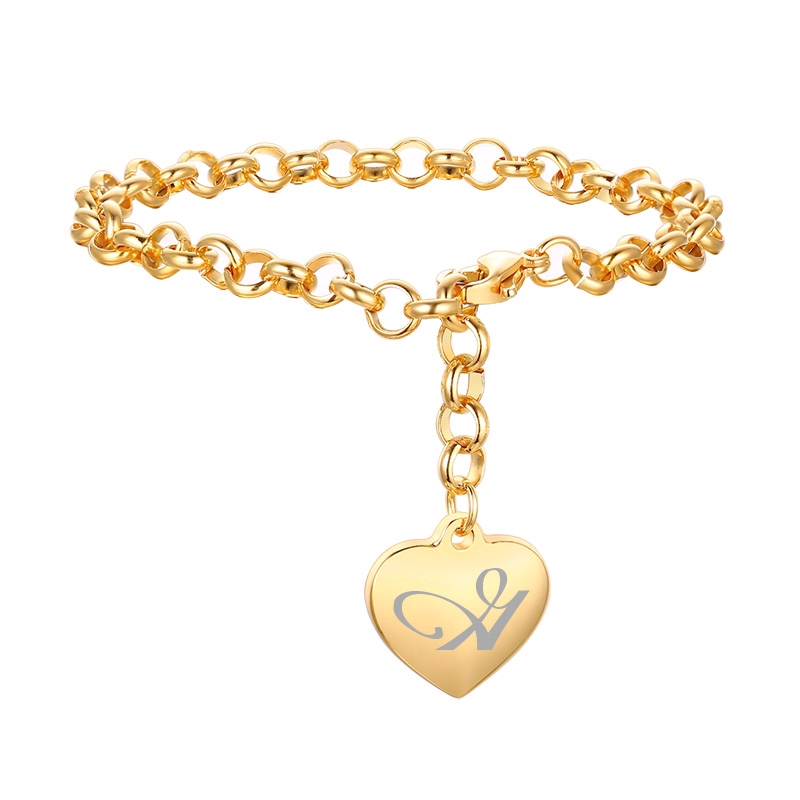Vnox Pulseira com Pingente de Aço Inox Folheado a Ouro com Iniciais em Letras do Alfabeto Bracelete Feminino