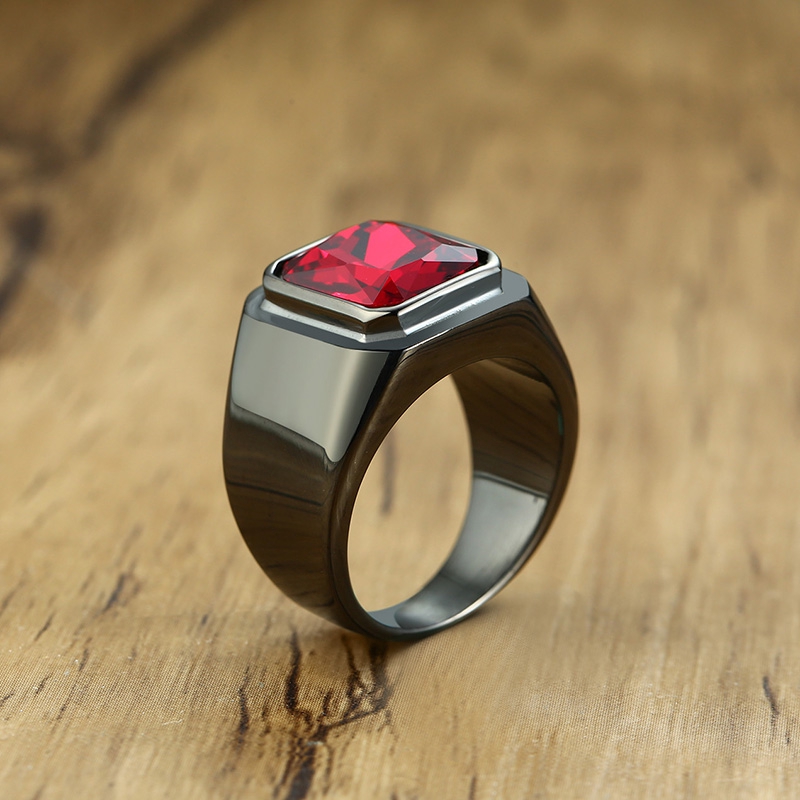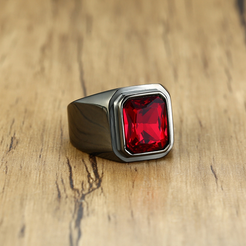 Vnox Anel De Casamento Noivado Masculino Clássico De Zircônia Vermelha Punk