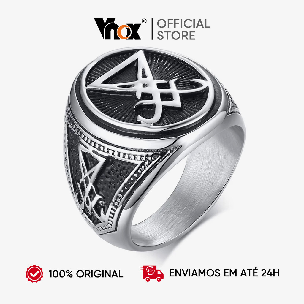 Vnox Stainless Steel Rings for Men Sigil of Lucifer Seal of Satan Devil Demon Symbol Jewelry with Gift Bag