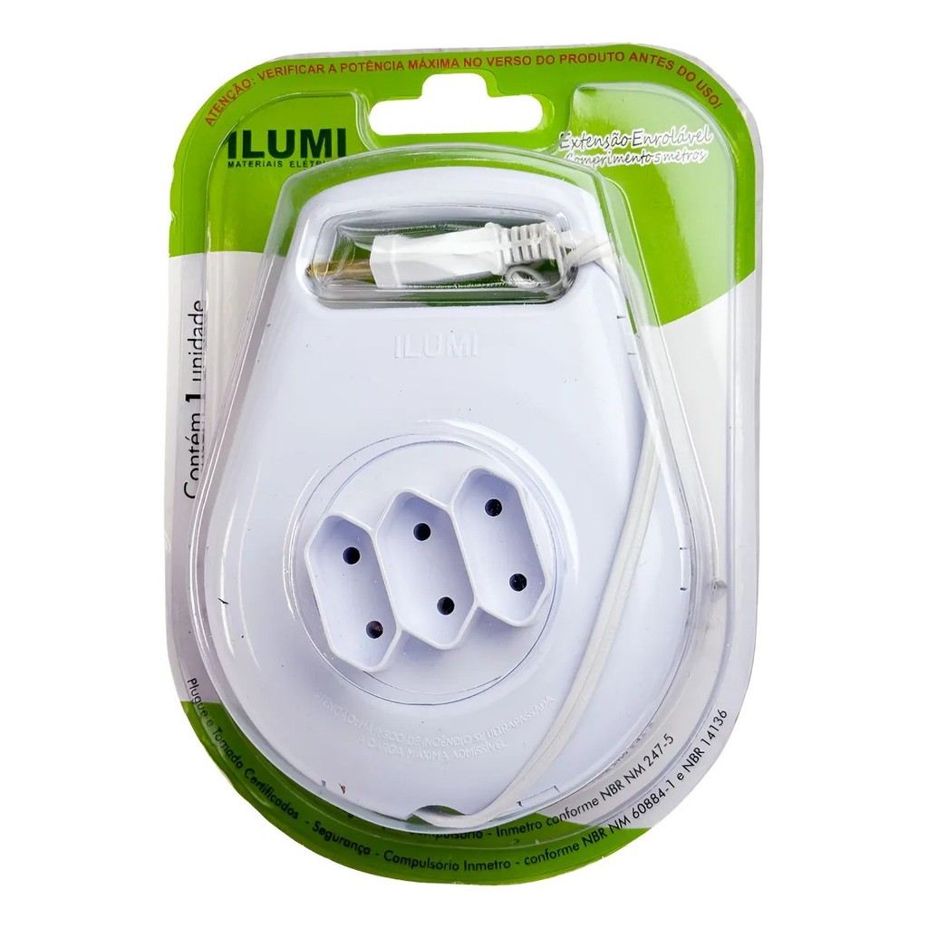 Extensão Elétrica de Enrolar 5M 124/250V Branca Ilumi