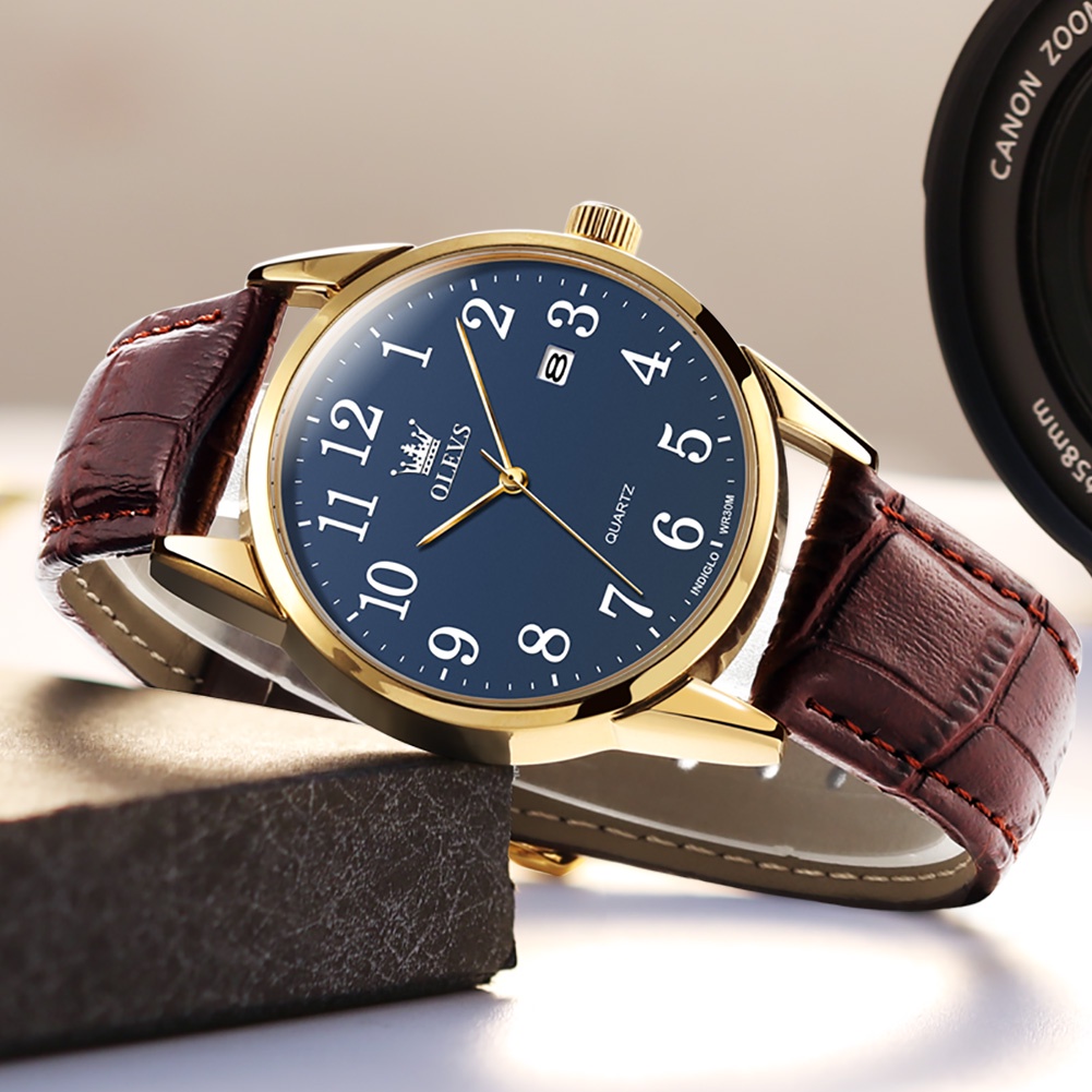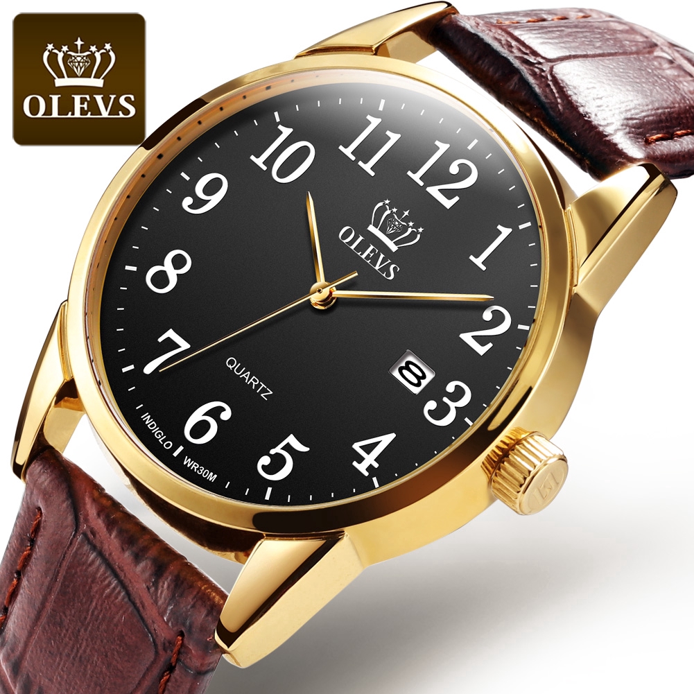 OLEVS 5566 Relogios masculinos à prova d'água original quartzo calendário negócios genuíno mens couro genuíno pulseira relógio de moda