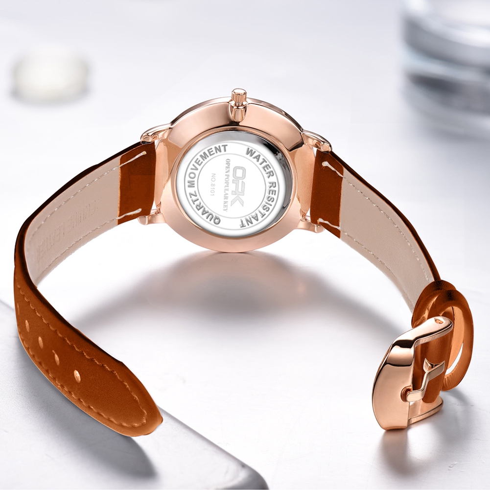 OLEVS 8101 Relógio Feminino A Prova D Água Analógico Relógio simples De Couro