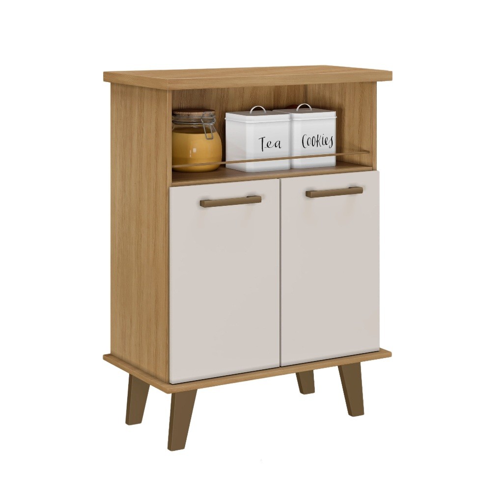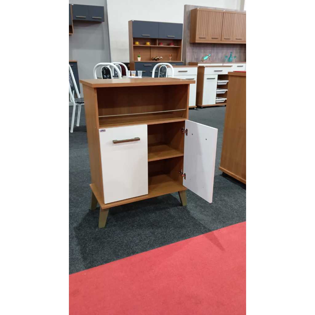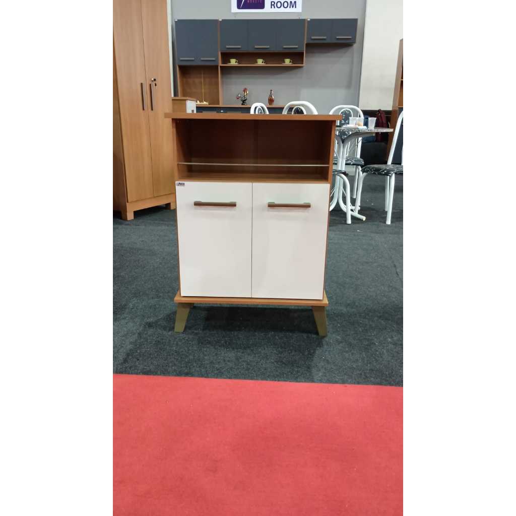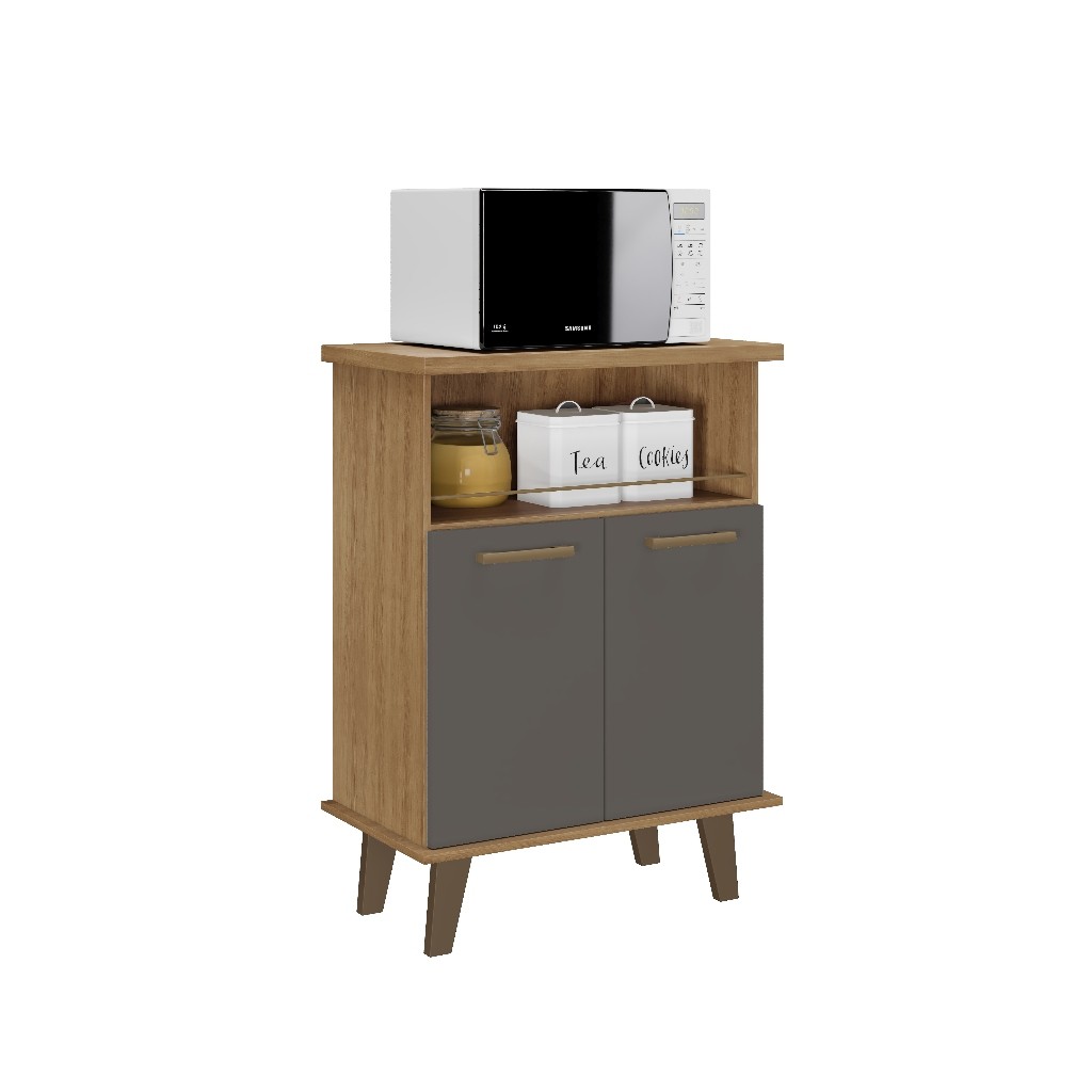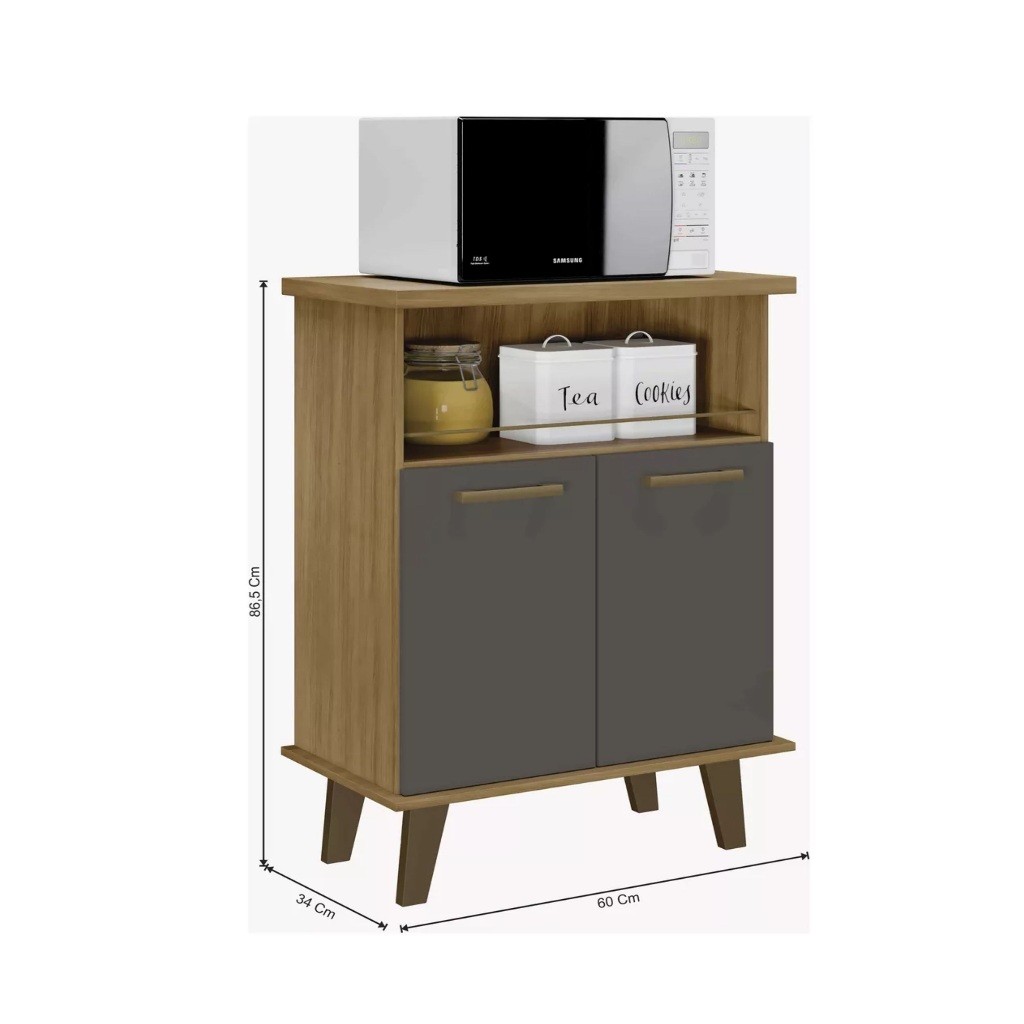 Balcão Gabinete 2 Portas - Armário Multiuso Com Nincho e Suporte Microondas