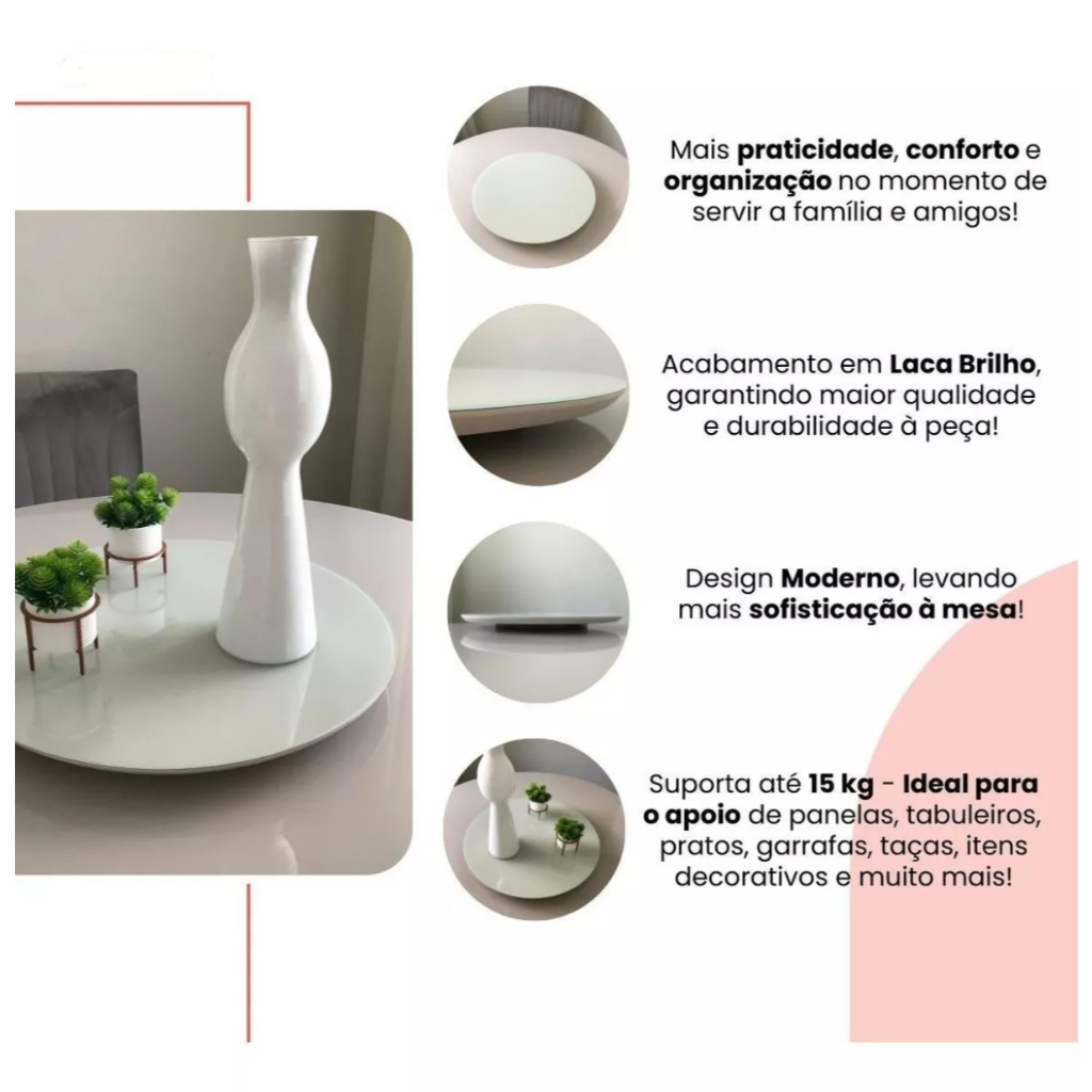 CENTRO DE MESA PRATO GIRATÓRIO DE 60 CM PARA SALA DE JANTAR.