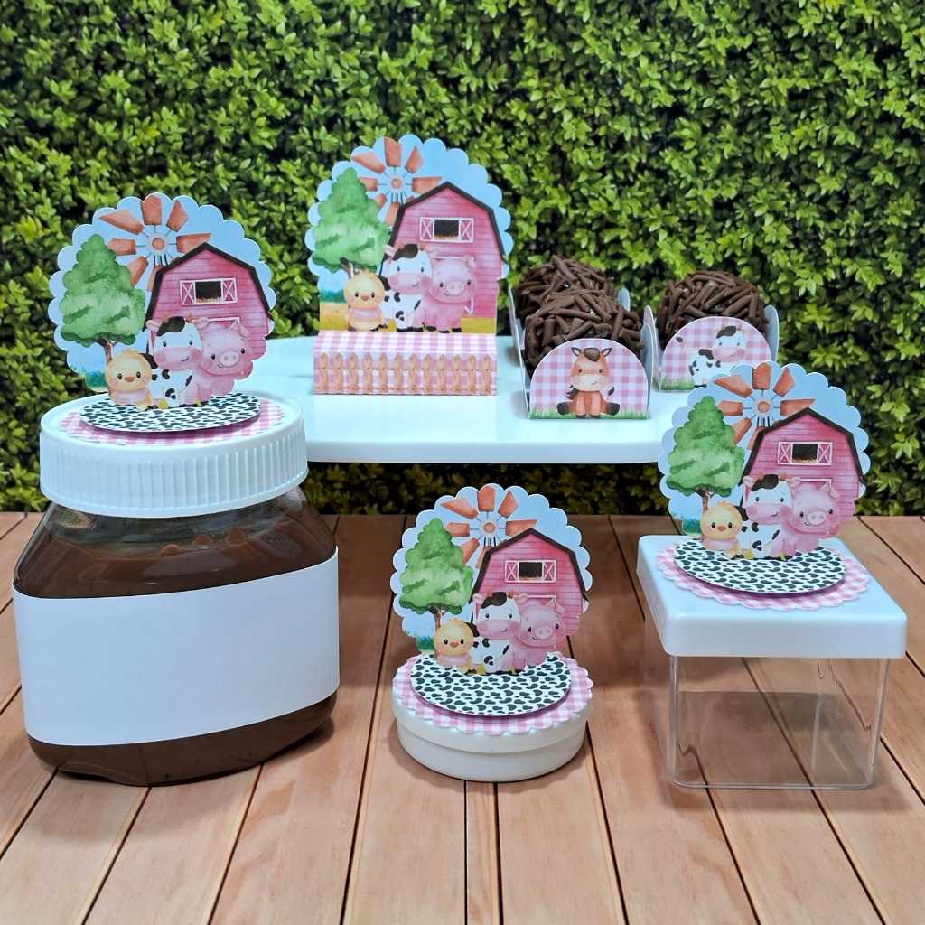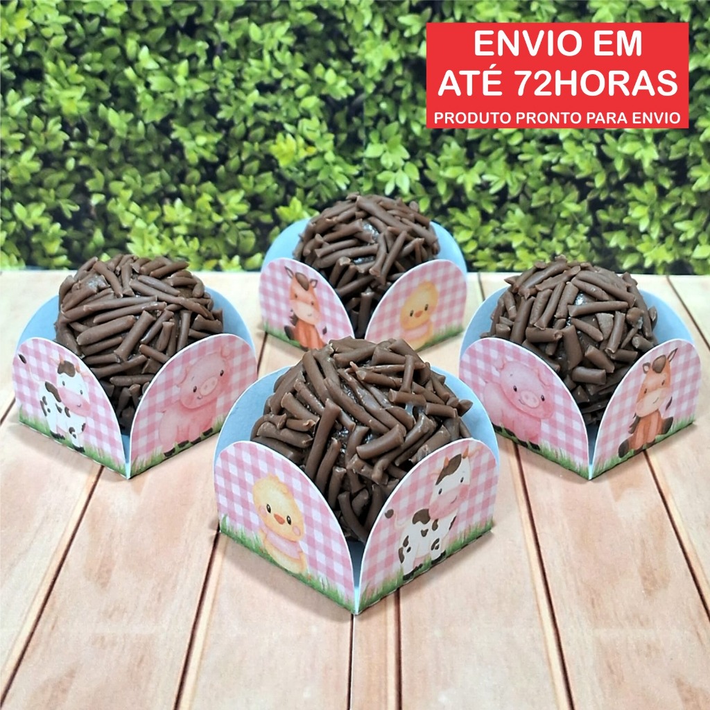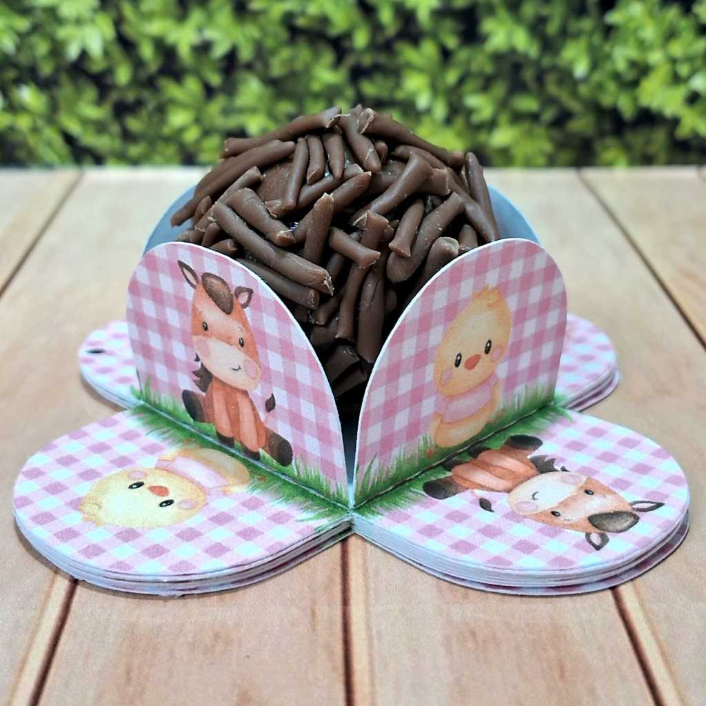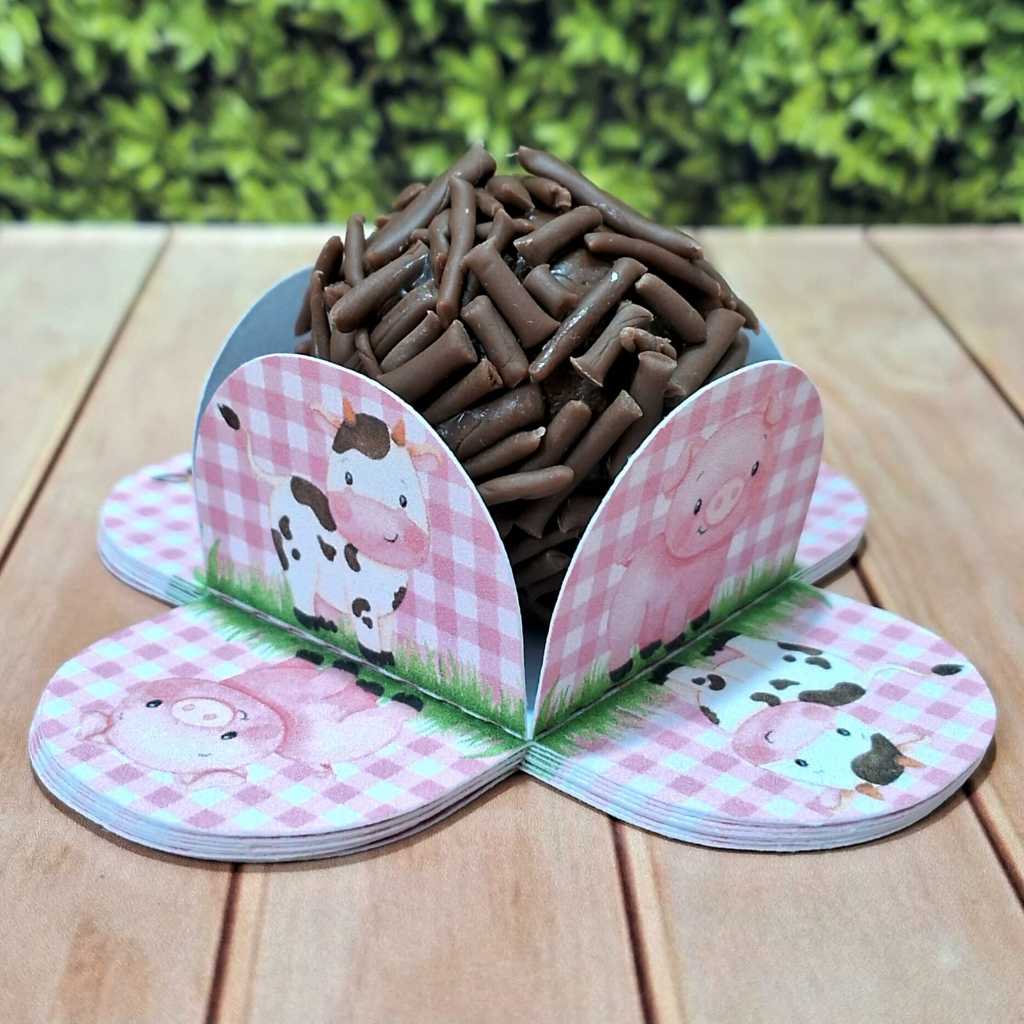 Forminhas 4 Pétalas Personalizada para Doces Brigadeiro, Aniversário, Festa Fazendinha Rosa