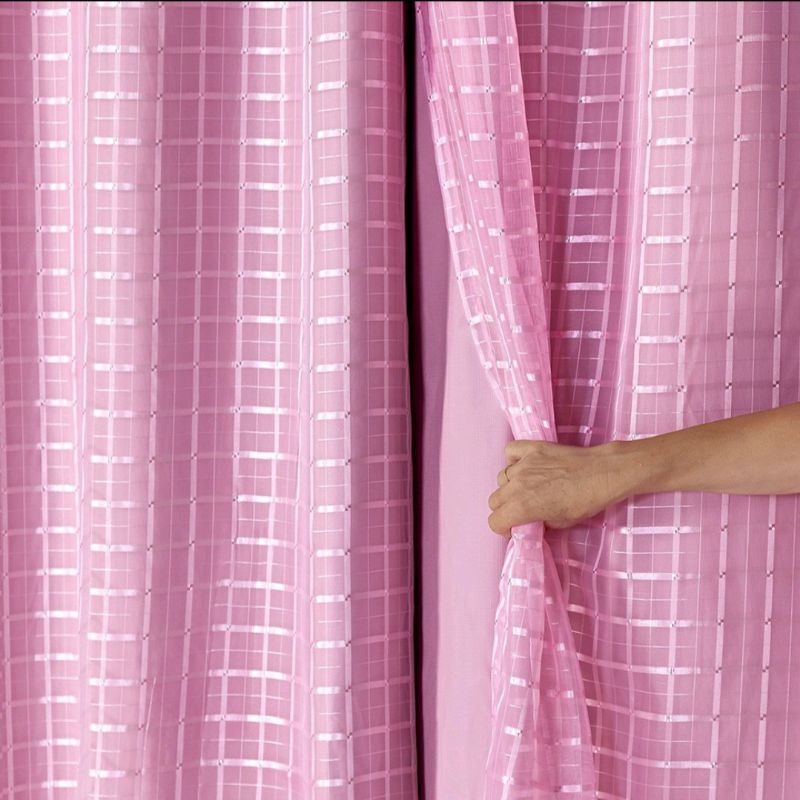 Cortina Blackout pvc blecaute com Tecido Voil Xadrez Janela 2.80 lar × 1.70 altu Sala / 2.80 largura x 2.70 de altura