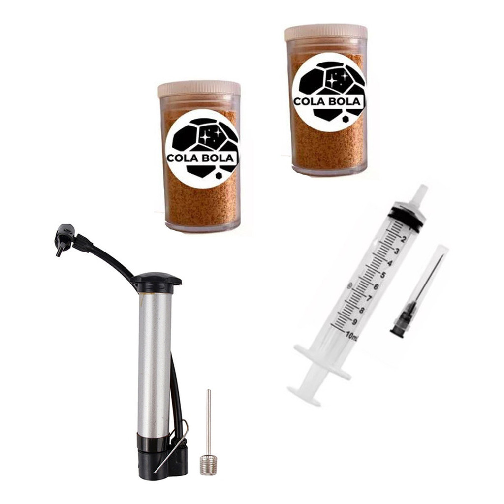 2 Cola Bola Conserto De Bolas Furadas Kit 1 Bomba 1 Seringa