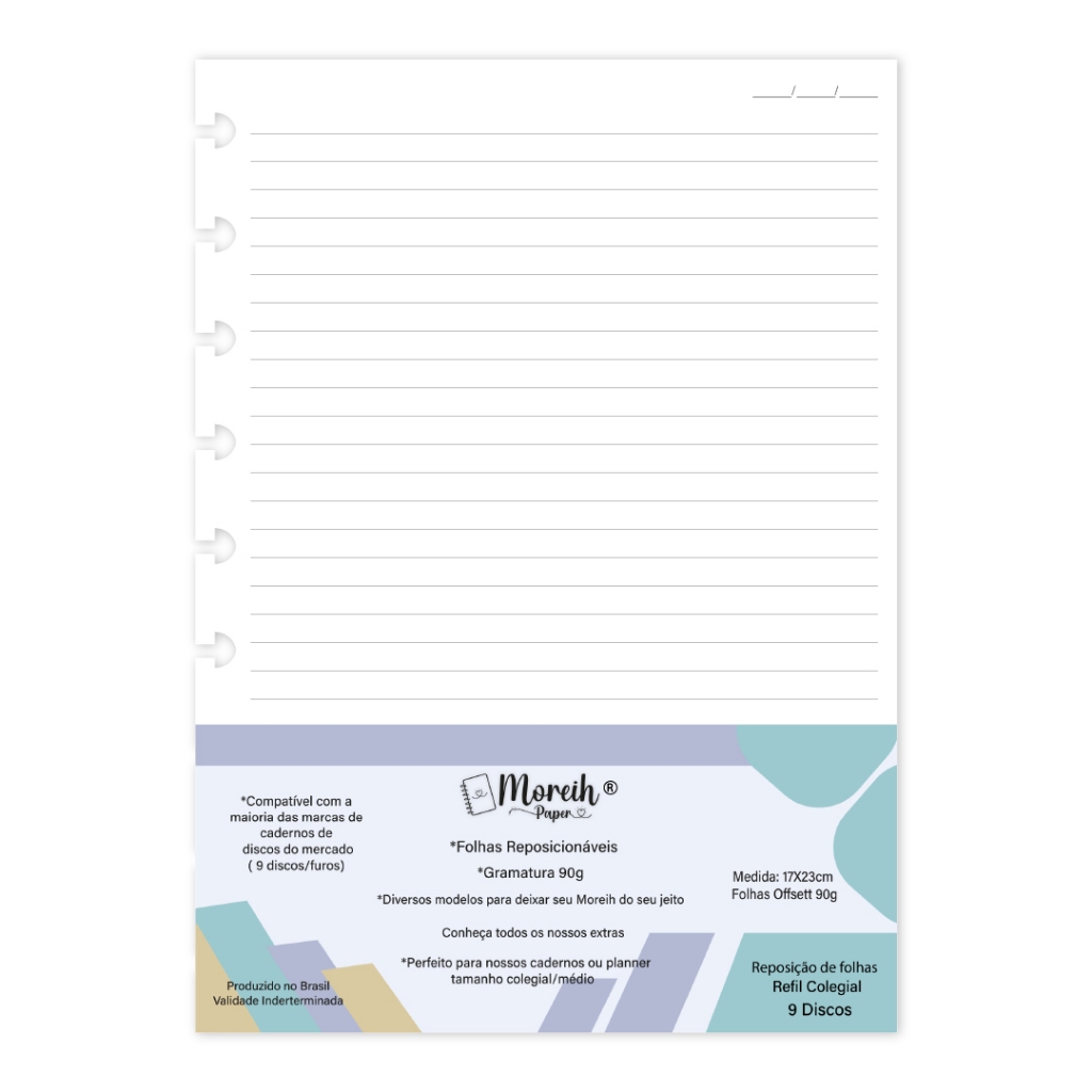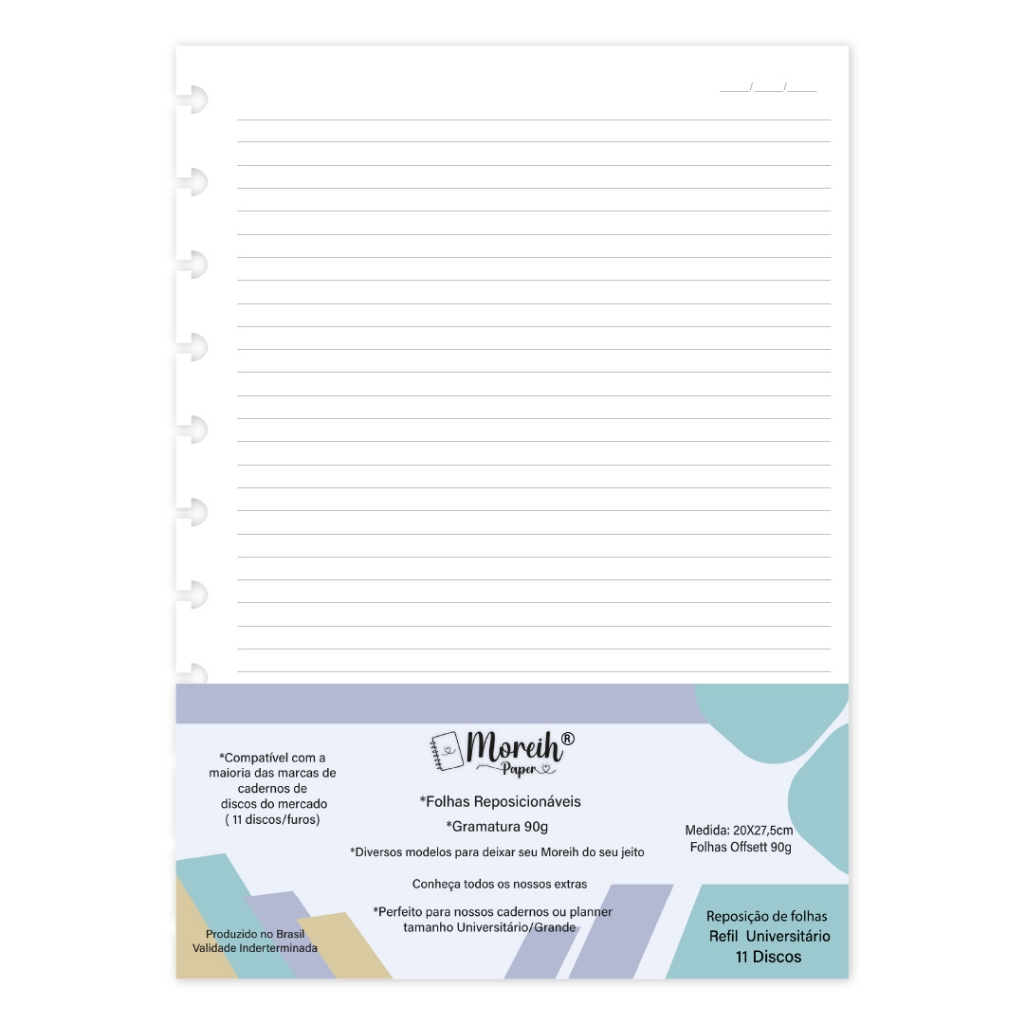 MIOLO REFIL PARA CADERNO DE DISCOS 50 FOLHAS - Pautado/linhas