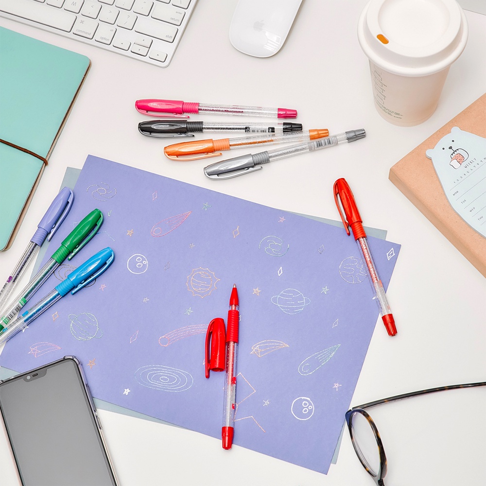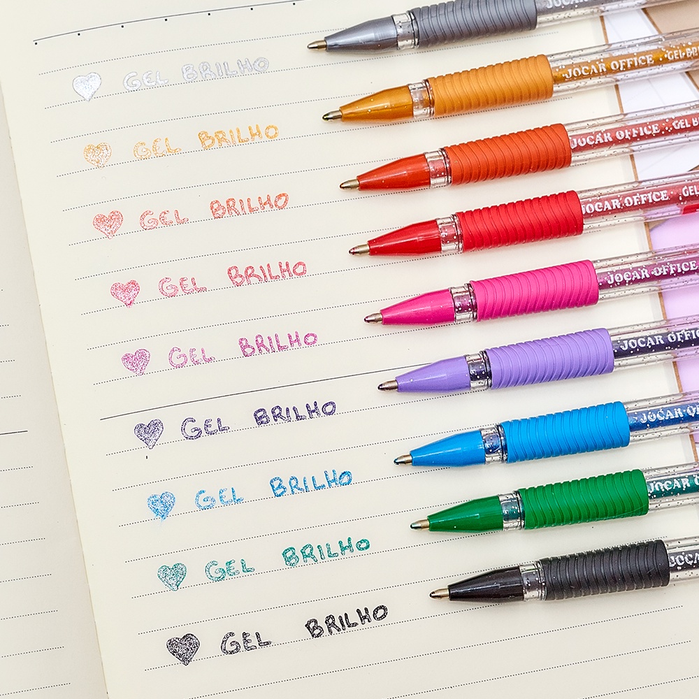 1 CANETA ESF.GEL BRILHO PONTA MEDIA 1.0MM 8 CORES à escolher