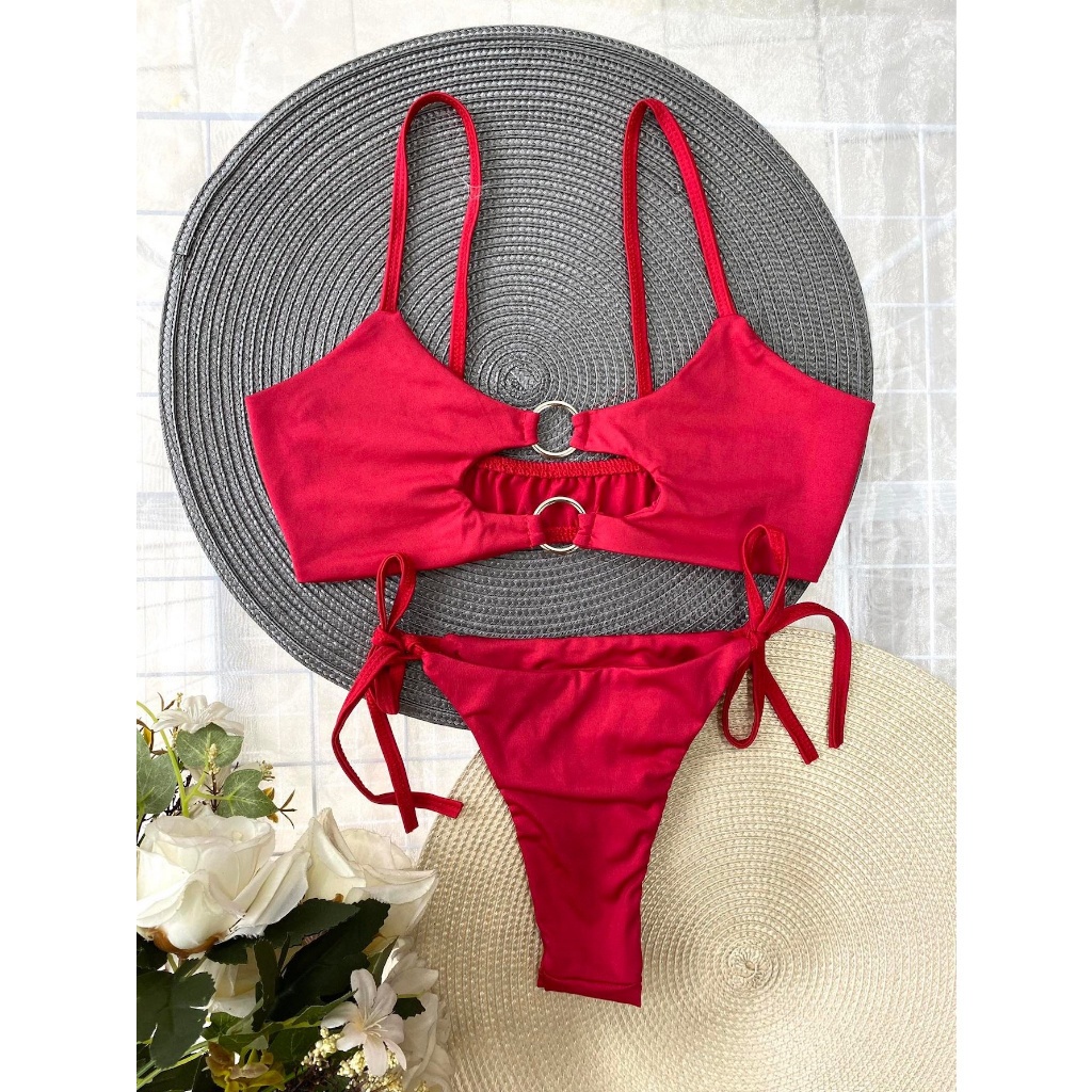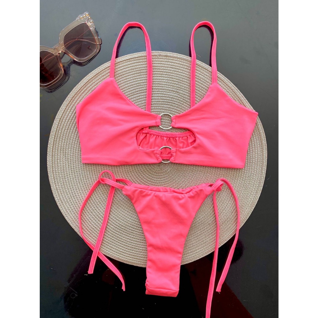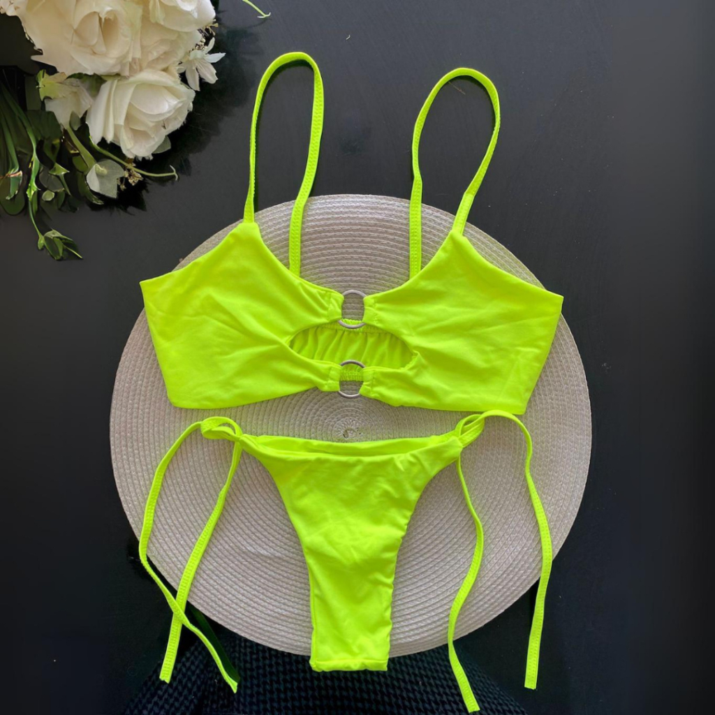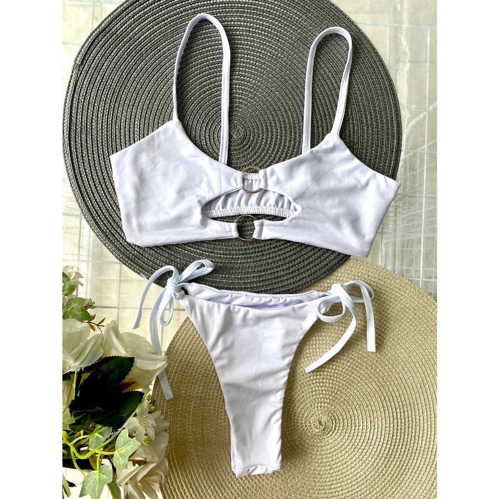Biquíni Cropped Argolas Fio Dental Básico Lacinho