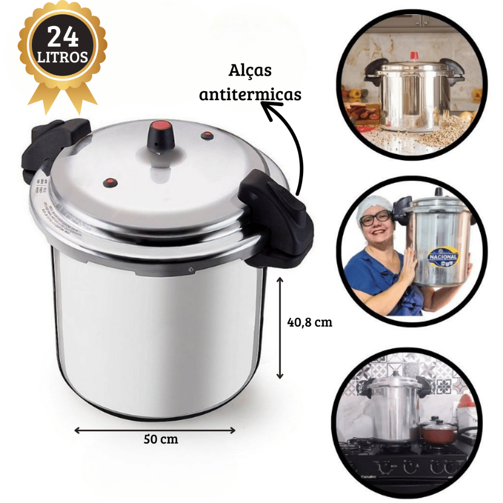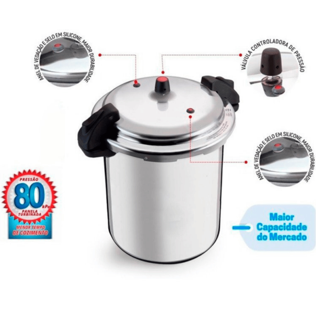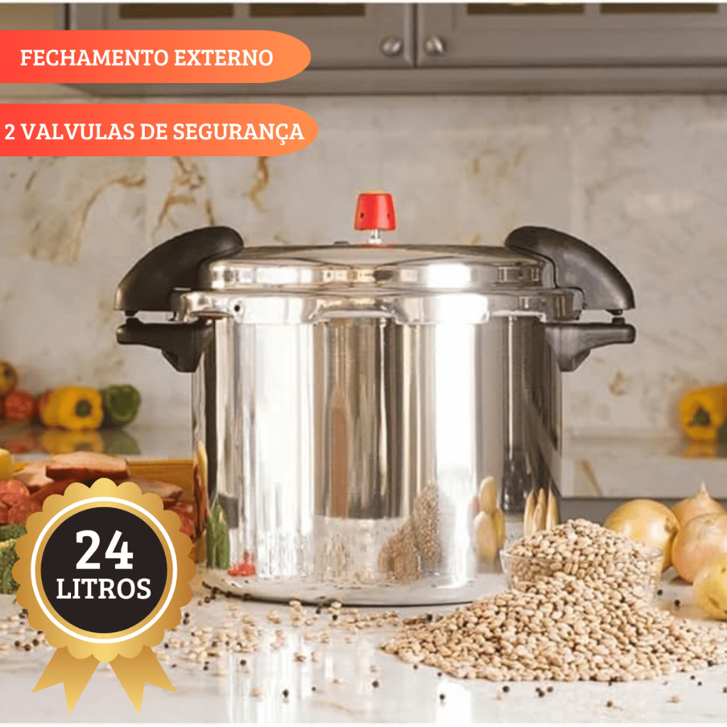 Panela de Pressão Profissional Hotel cozinha industrial Fechamento Externo 20/24 Litros Alumínio
