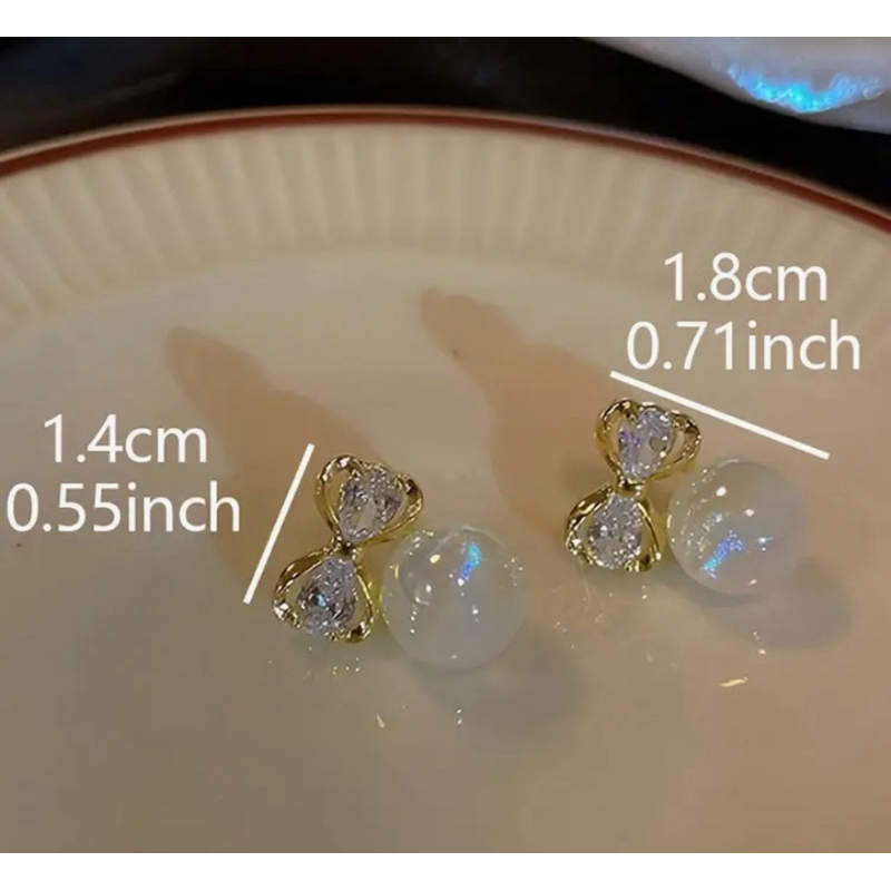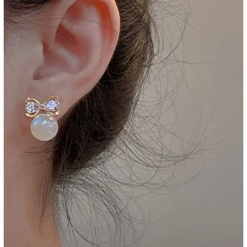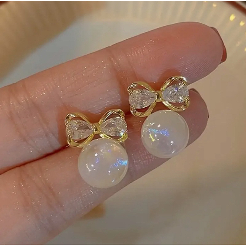 Brinco Laço Dourado com Pérola furta-cor cravejado– Delicado e Elegant